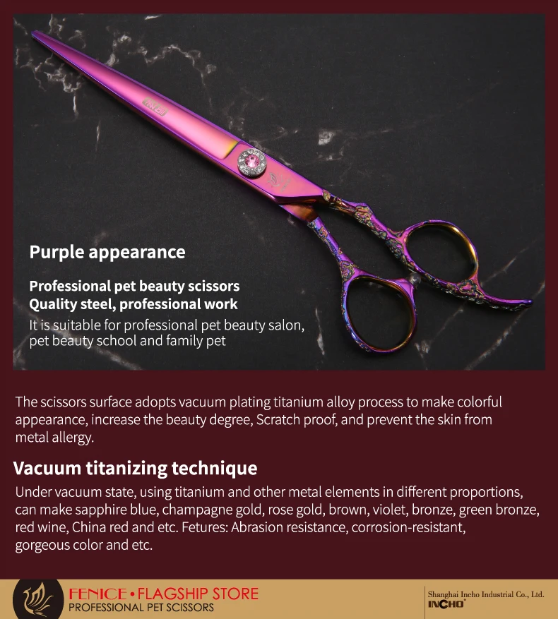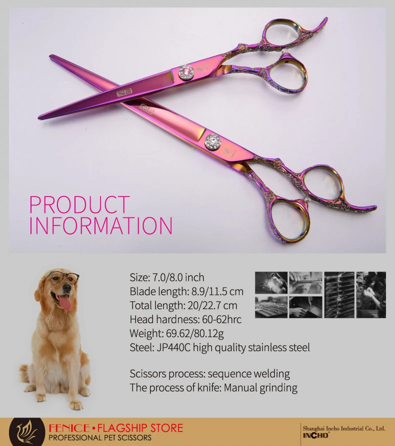 Fenice Professional 7,0/7,5/8,0 pulgadas, para el cuidado de mascotas, recortadoras de pelo de perro, tijeras, tijeras para cortar perros, tijeras de aseo