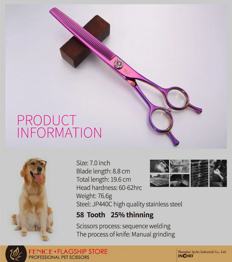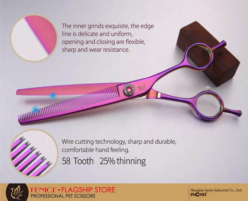 Fenice Tijeras profesionales para el cuidado de perros de 7,0 pulgadas para perros Tijeras para adelgazar Tijeras Tasa de adelgazamiento del 25%