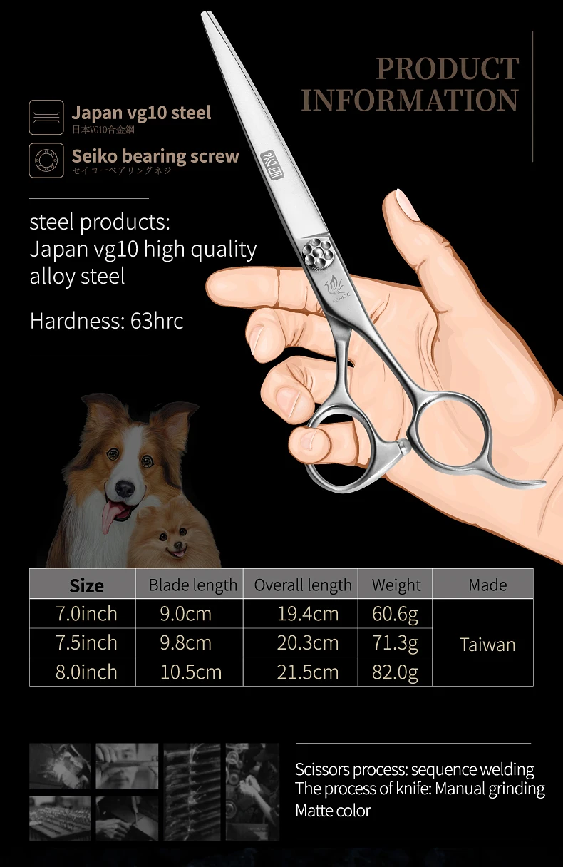 Fenice-tijeras de acero JP VG 10 para perros, 7/7 pulgadas, tornillo de rodamiento, tijeras de aseo, tesoura, tijeras