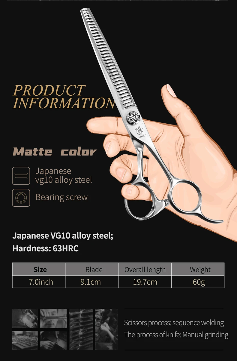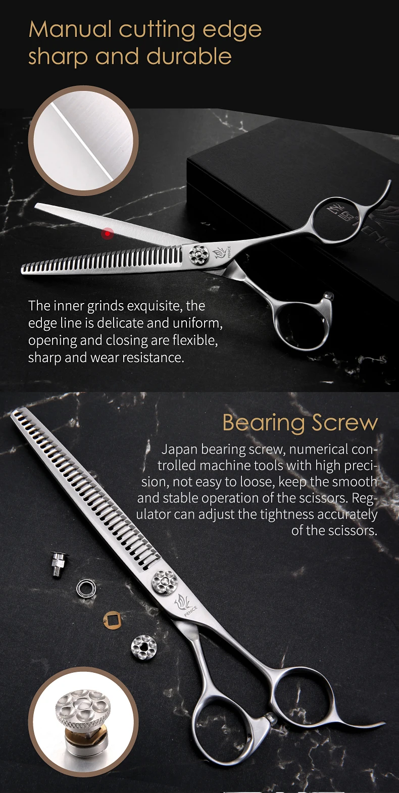 Fenice-Tijeras de acero JP VG10 para perros, herramientas de corte de 7 pulgadas, corte fino, rodamiento, tornillo, adelgazamiento