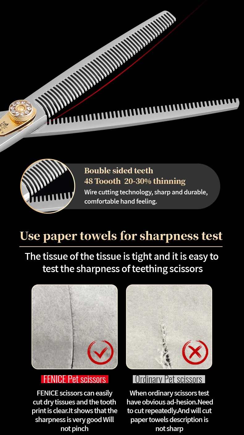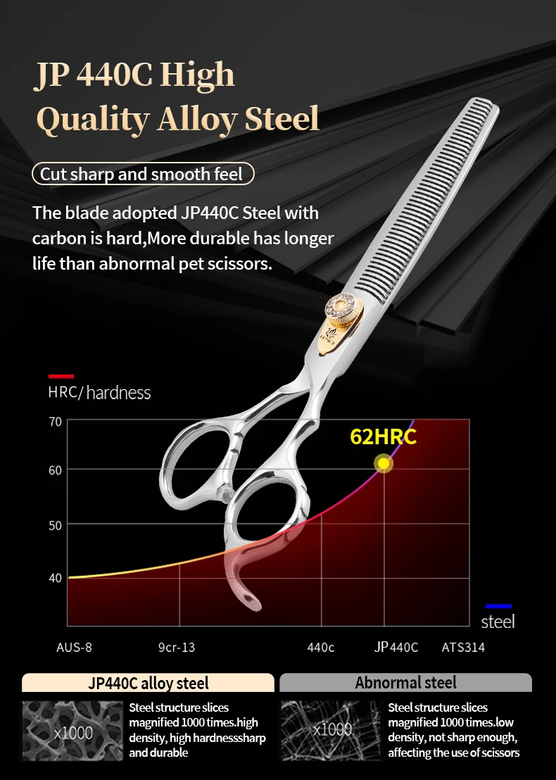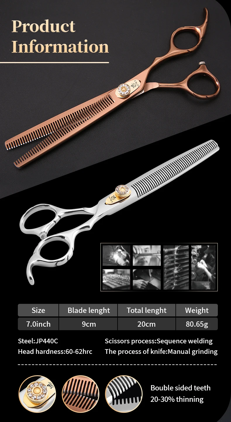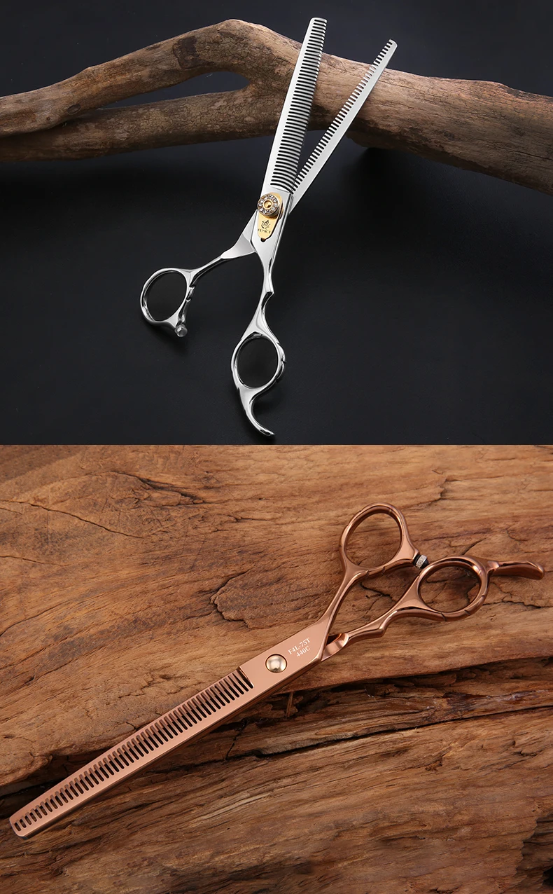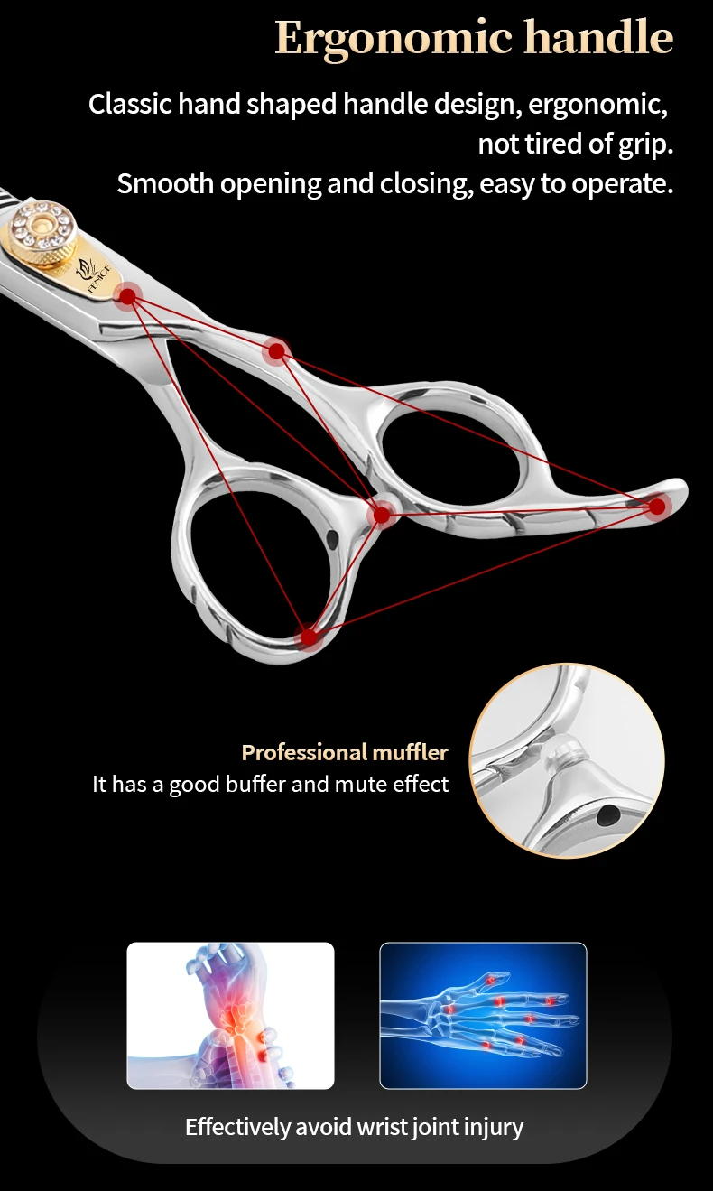Tijeras excelentes, cortan muy bien, estuche hermoso, peine como regalo. A veces, sin embargo, las cuchillas se doblan ligeramente, pero espero que esto pase.