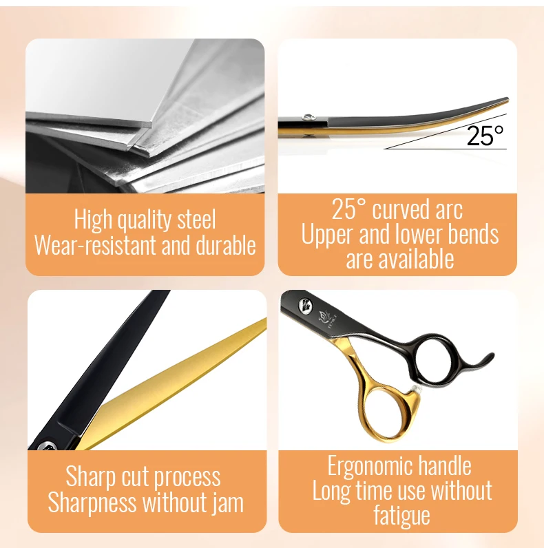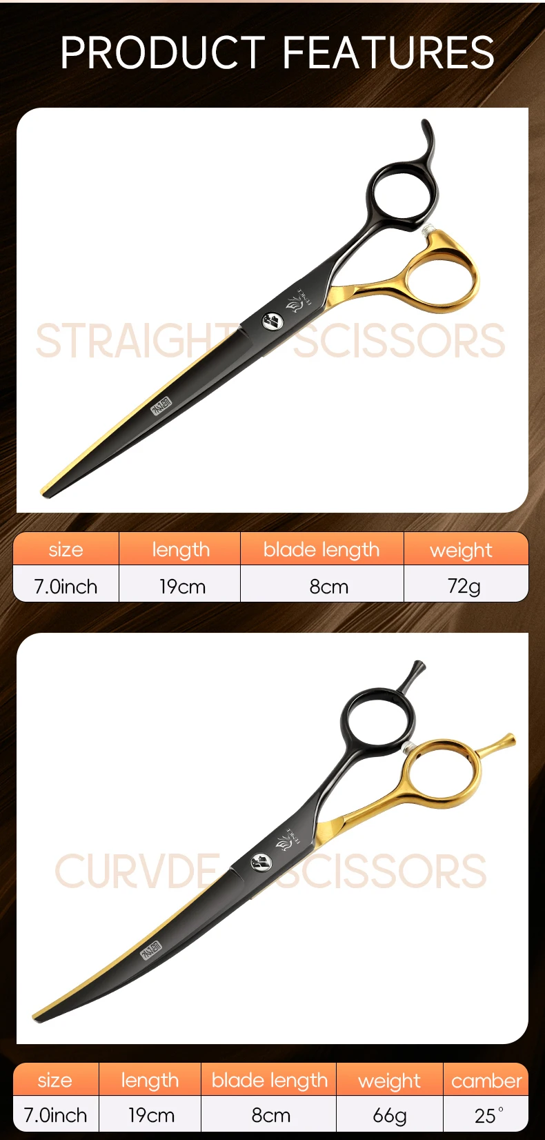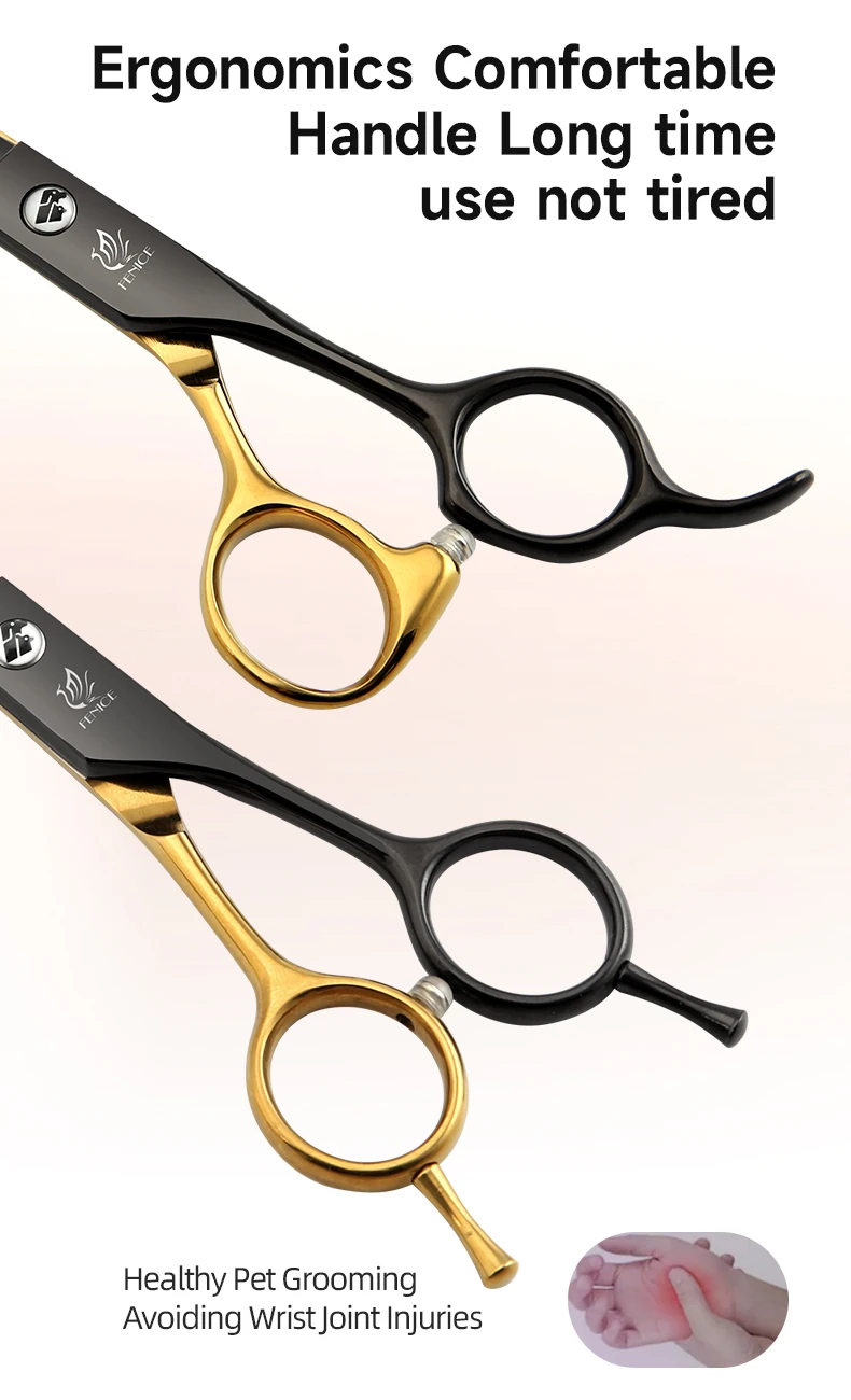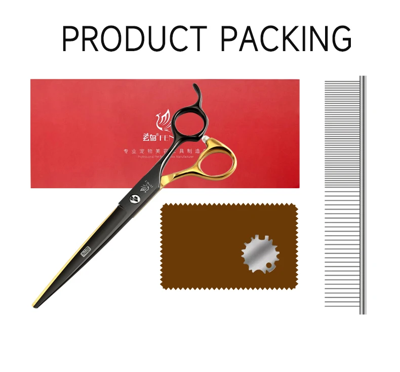 Fenice Tijeras para el cuidado de mascotas de oro negro de 6,5/7 pulgadas, tijeras caninas Chunker curvadas y rectas para principiantes, uso doméstico