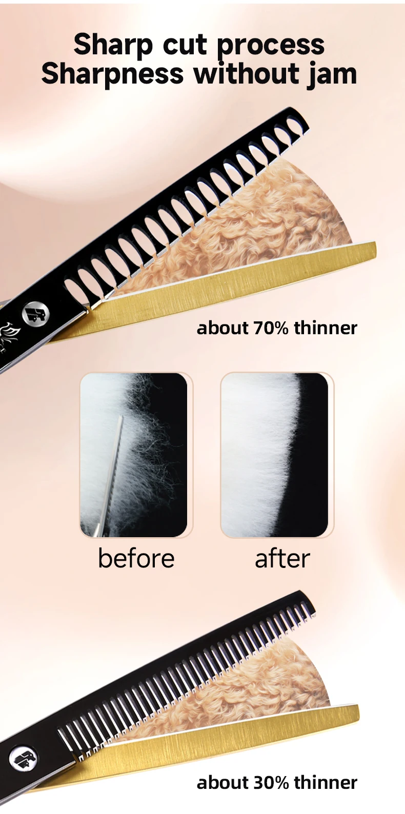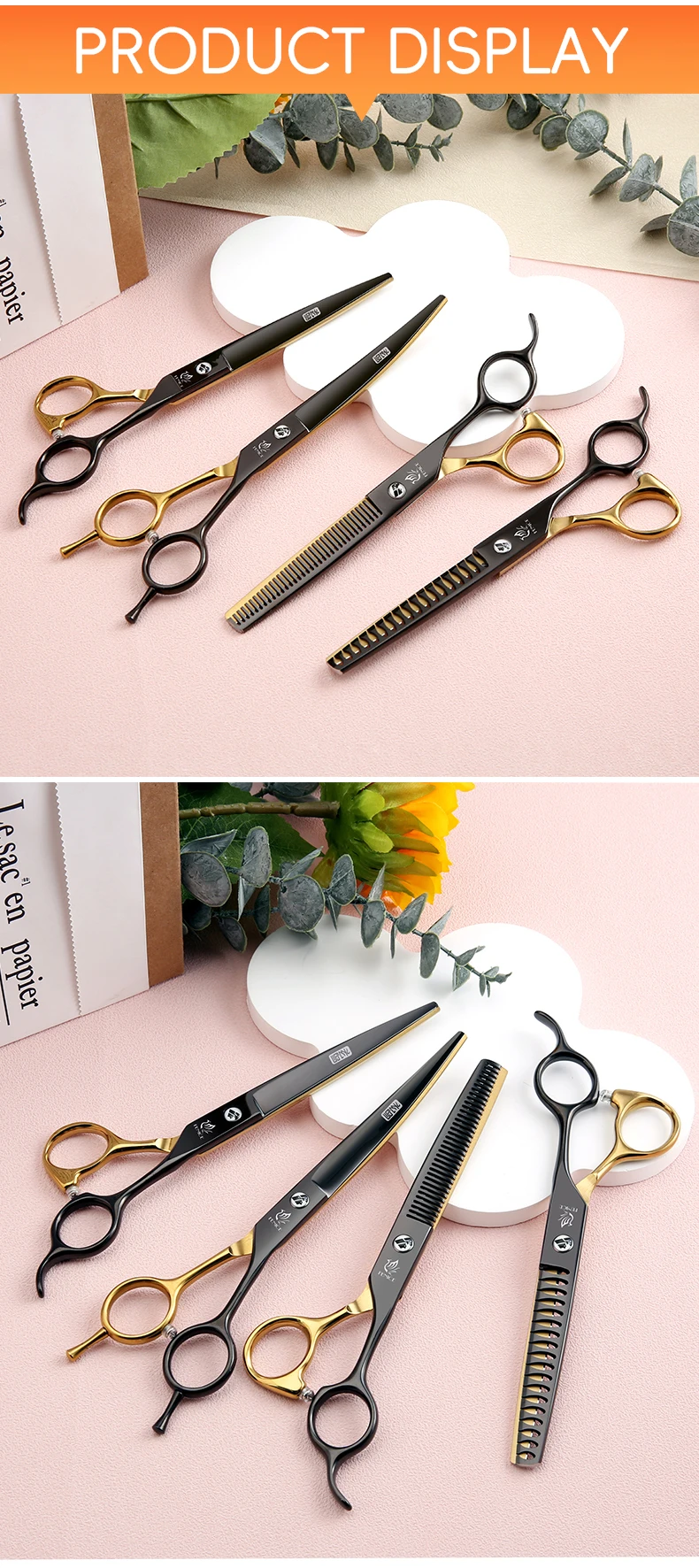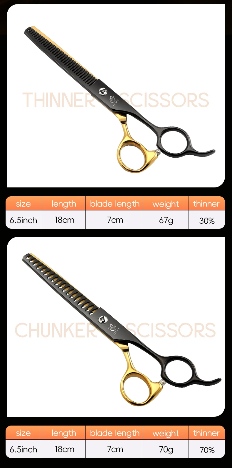 Fenice Tijeras para el cuidado de mascotas de oro negro de 6,5/7 pulgadas, tijeras caninas Chunker curvadas y rectas para principiantes, uso doméstico