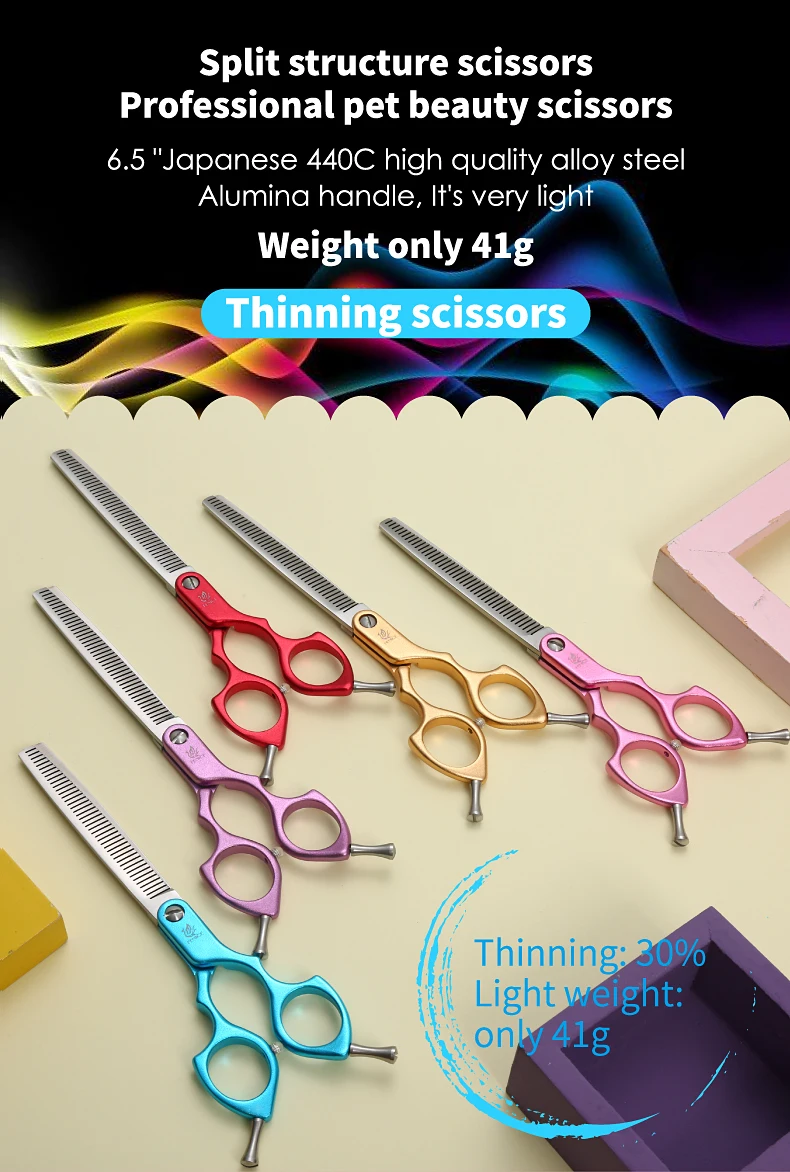 Fenice-Tijeras de aseo para perros, accesorio de acero inoxidable 440C de 6,5 pulgadas, para adelgazamiento de perros, tasa de belleza del 30%