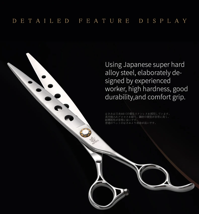 Fenice-Tijeras de corte de pelo para mascotas, tijeras rectas con borde afilado, para perros y gatos, herramientas de peluquero, 7/7, 5/8 pulgadas, Jp440c
