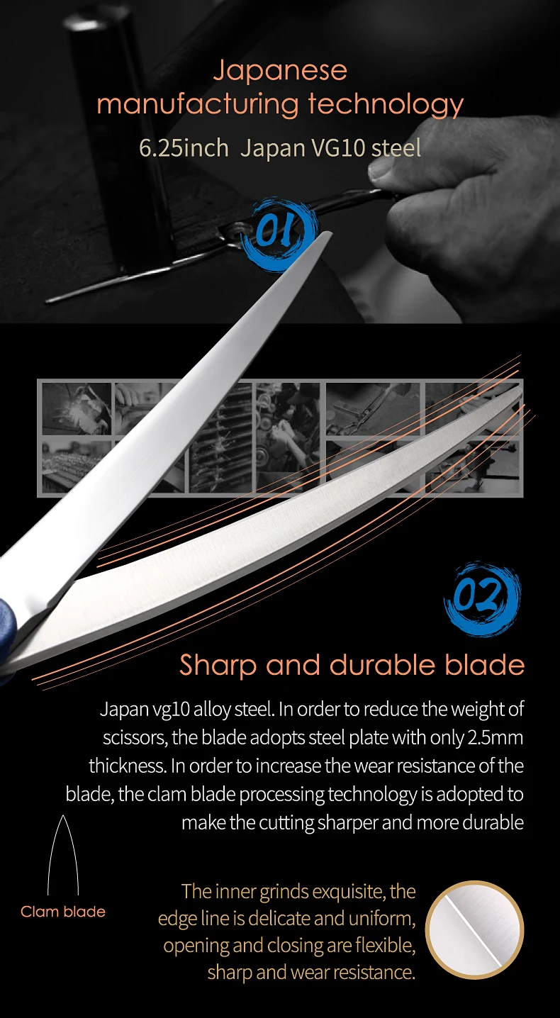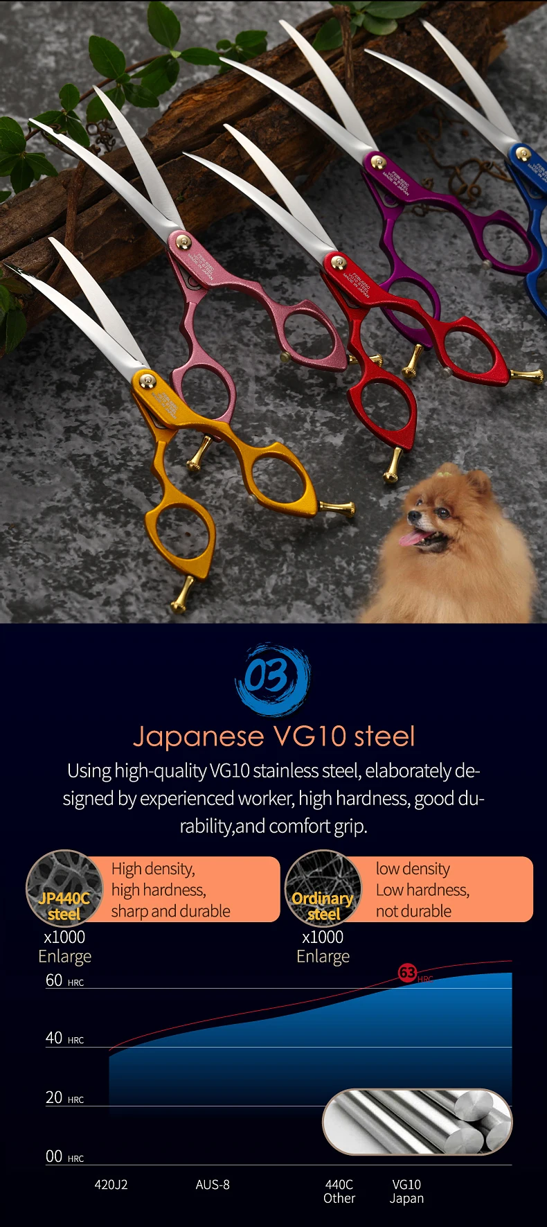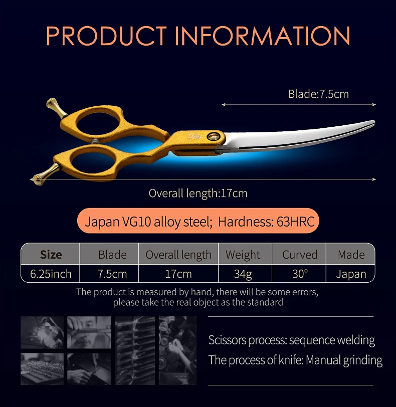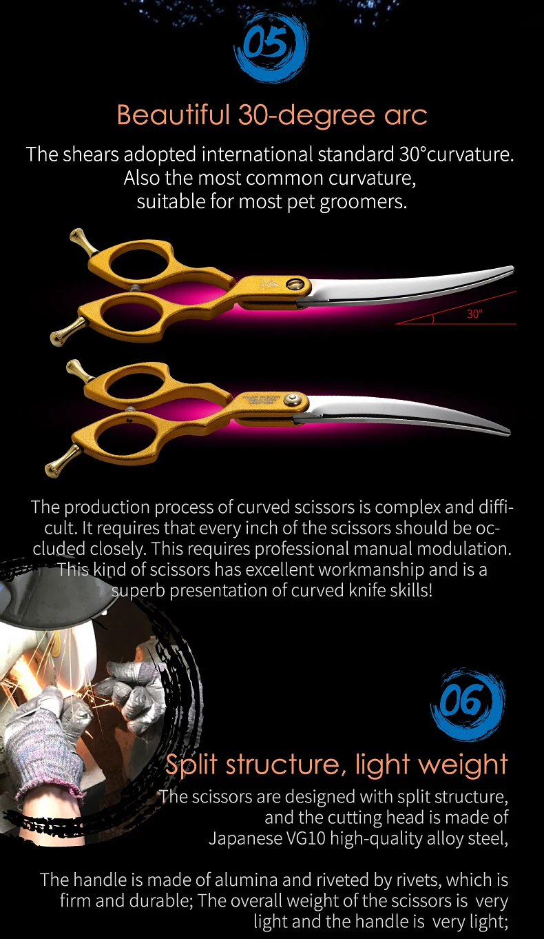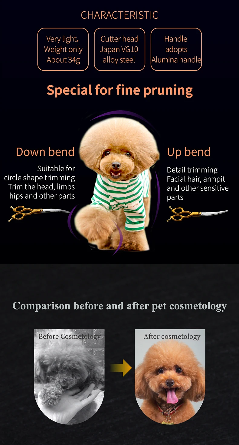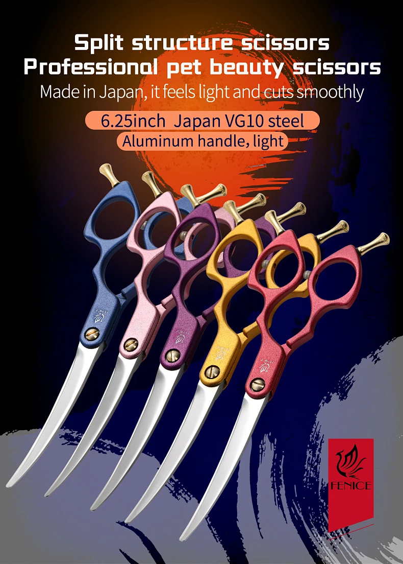 Fenice-Tijeras curvadas de acero JP VG10 para perros y mascotas, cortadoras finas de 6,25 pulgadas, herramientas de corte