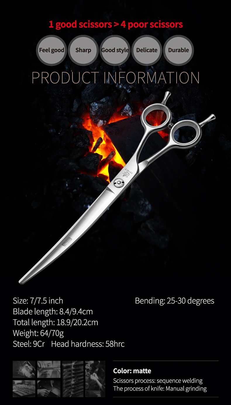 Fenice-tijeras curvadas profesionales para perros, tijeras de recorte para mascotas, tijeras de aseo para perros, makas, tijeras, 7/7 pulgadas