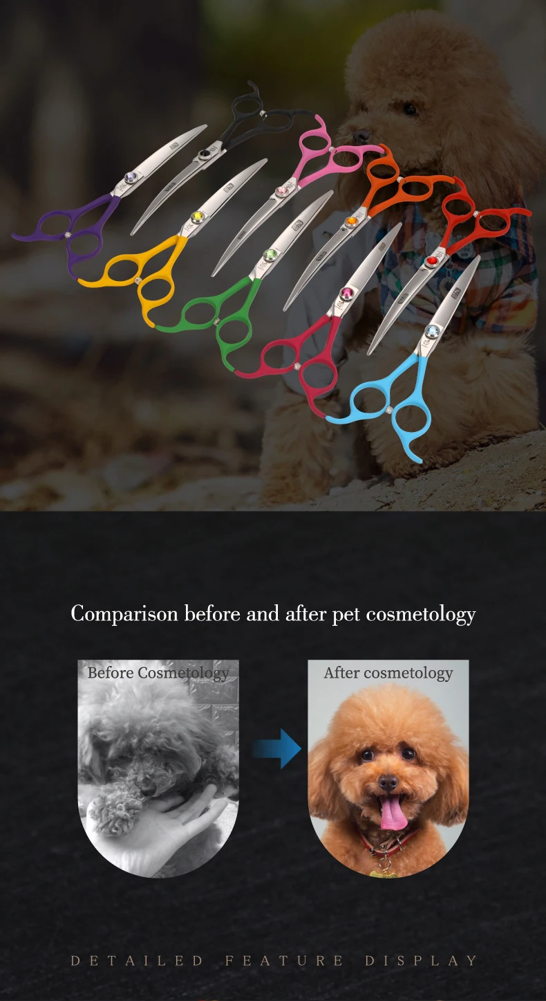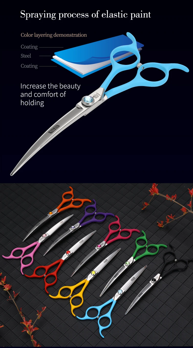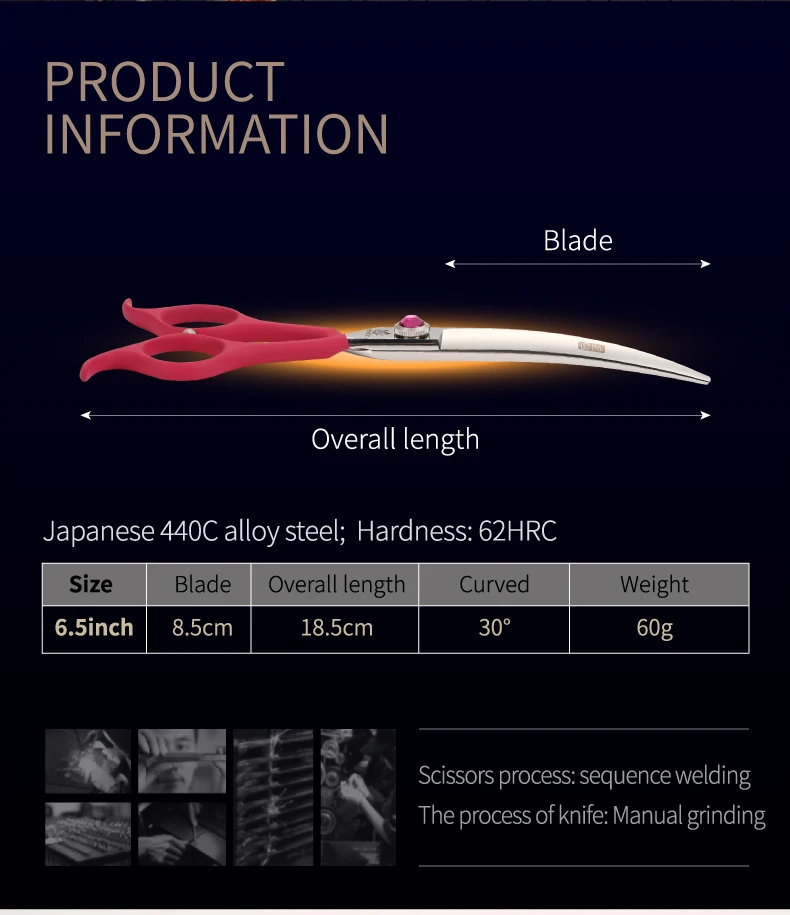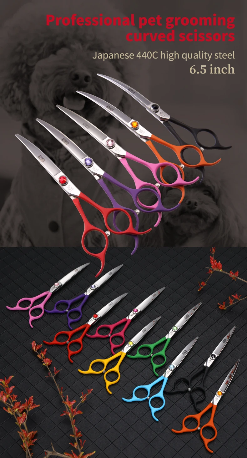Fenice profesional tijeras curvas para mascotas de 6,5 pulgadas en tijeras para perros tijeras de corte de aseo makas tijeras