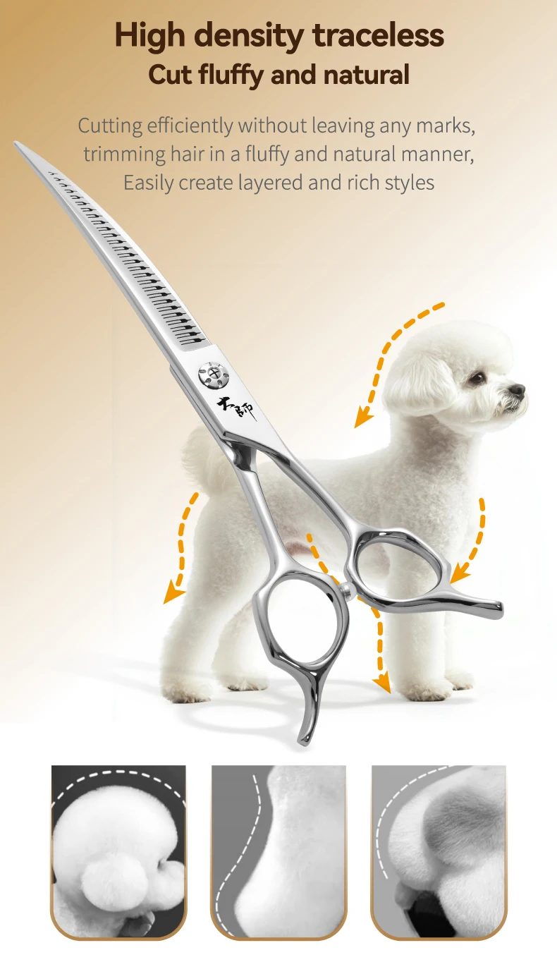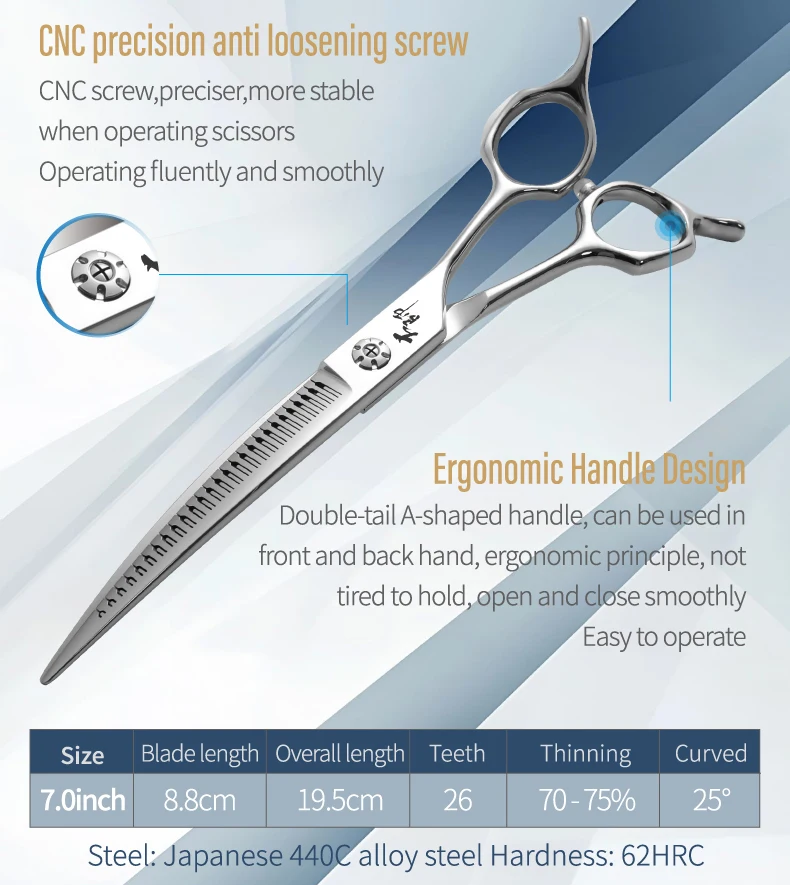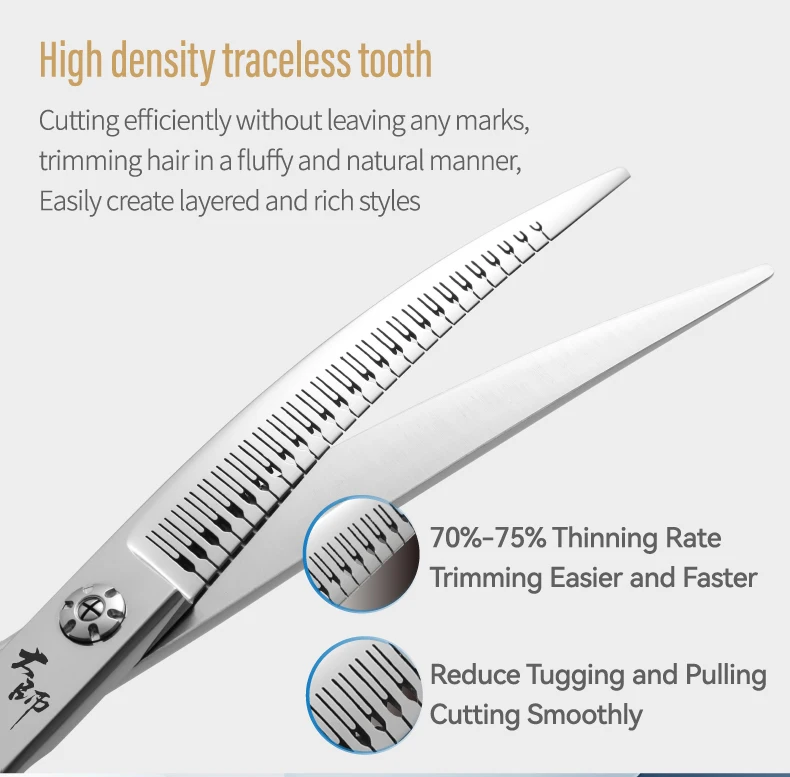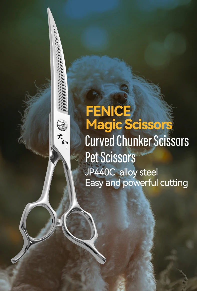 Fenice-tijeras mágicas 5D para el cuidado de mascotas, 7 pulgadas, con dientes pequeños, corte y peluquería, tijeras curvas de belleza para perros JP440C