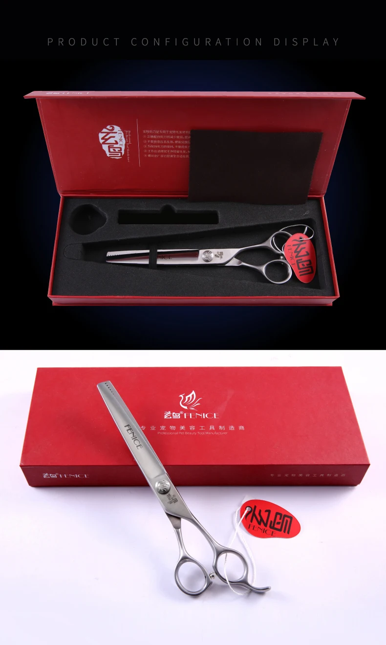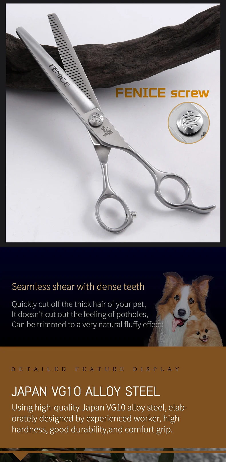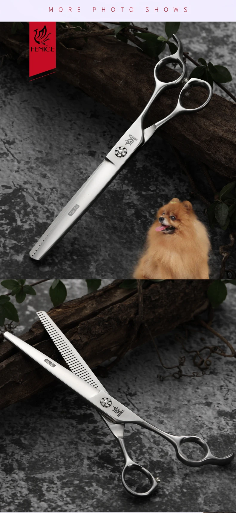 Fenice 7" Pet Dog Gromming Scissor Thinning Shears Sharp Edge Animals Cat Reversed Tooth Scissors Cutting tools tijeras tesoura