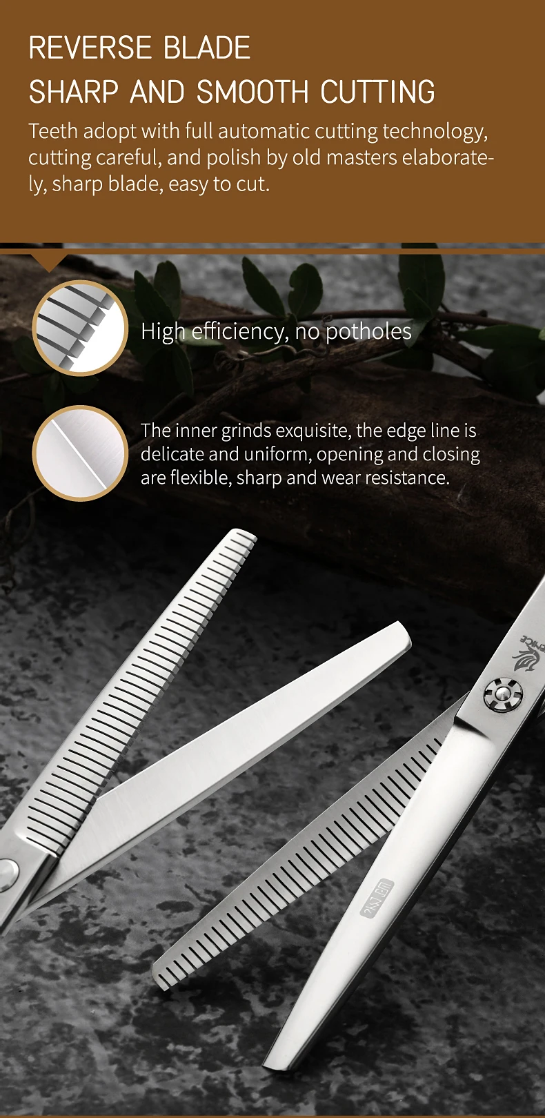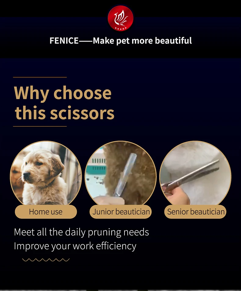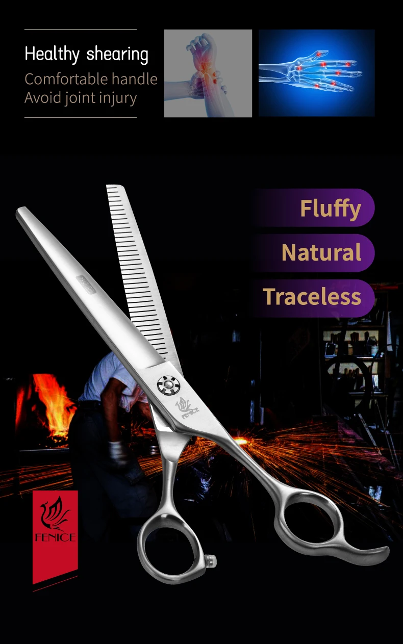 Fenice 7" Pet Dog Gromming Scissor Thinning Shears Sharp Edge Animals Cat Reversed Tooth Scissors Cutting tools tijeras tesoura