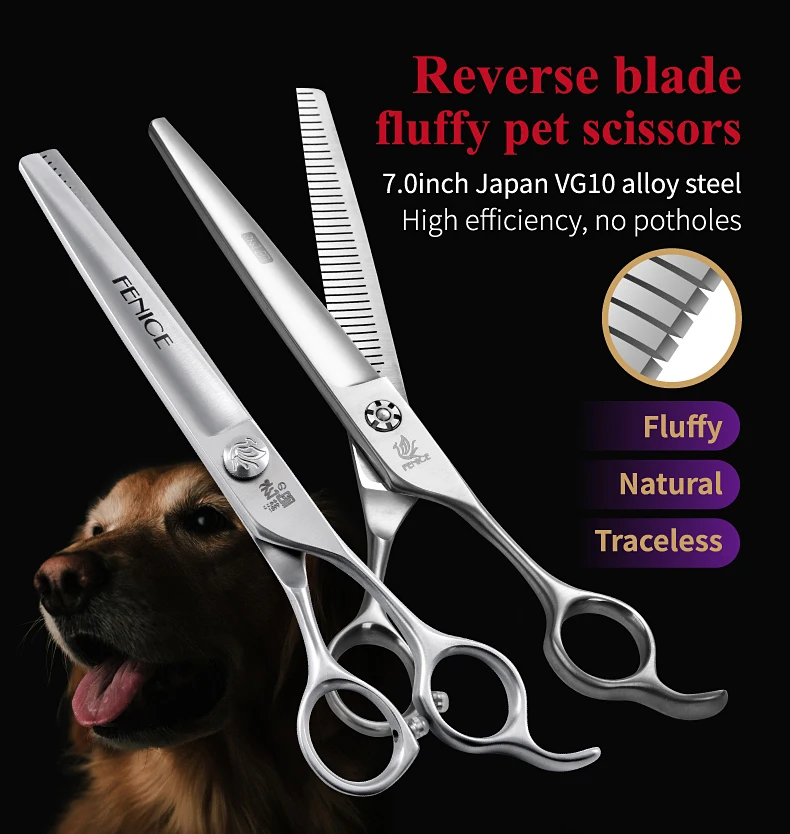 Fenice 7 inch VG10 Pet Dog Grooming Scissor Reversed Tooth Fluffy Thinning Hair Dog Clipper Scissors tijeras tesoura Rate 50-55%