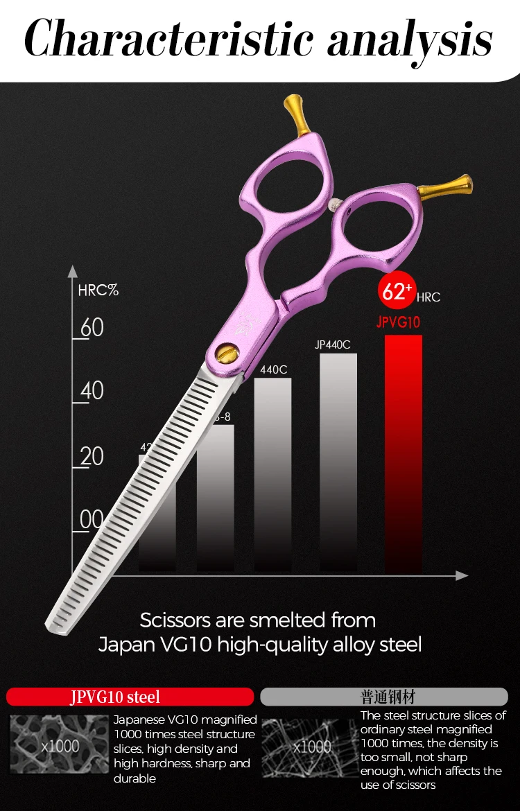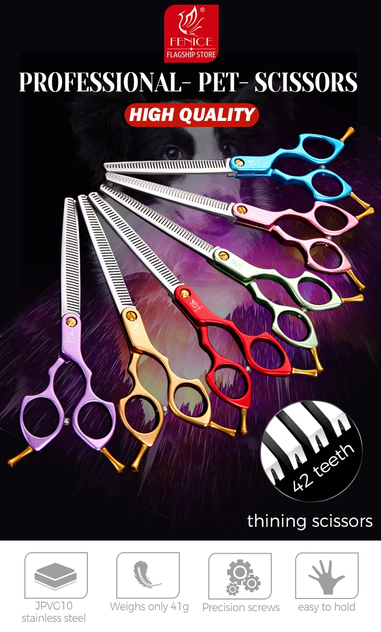 Fenice para zurdos y diestros, tijeras profesionales de acero VG10 de 6,5 pulgadas para mascotas, tijeras para el cuidado de perros, tijeras de adelgazamiento, tasa de adelgazamiento 30%