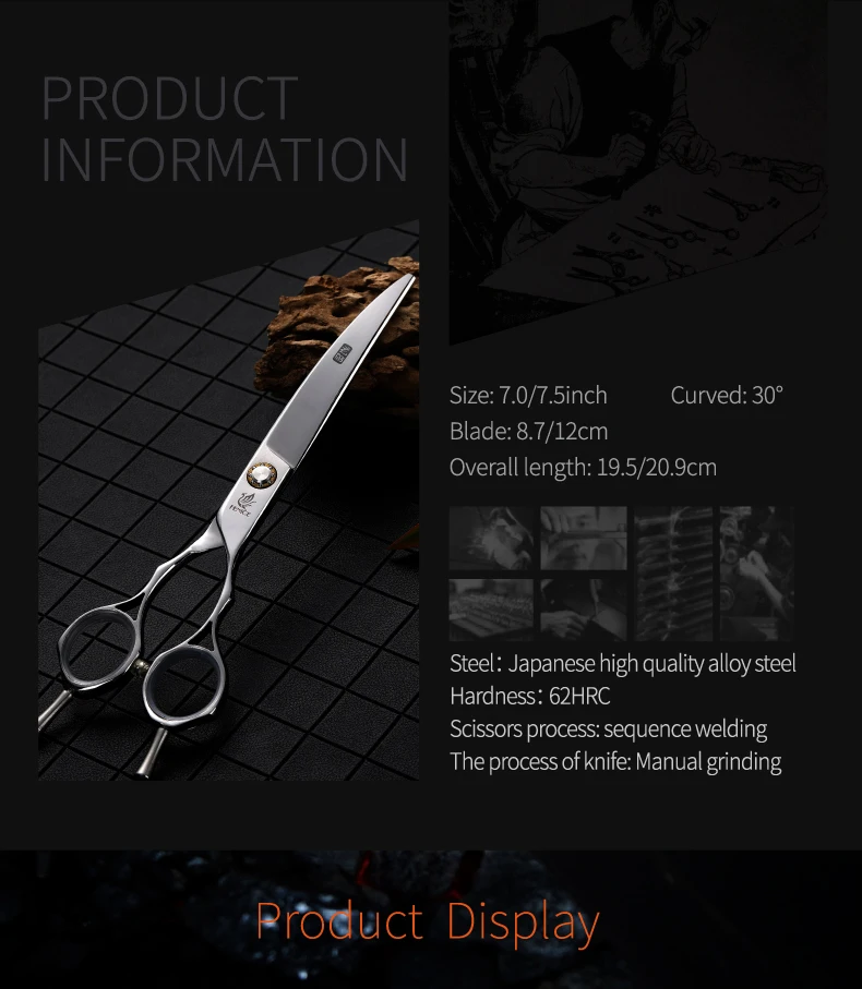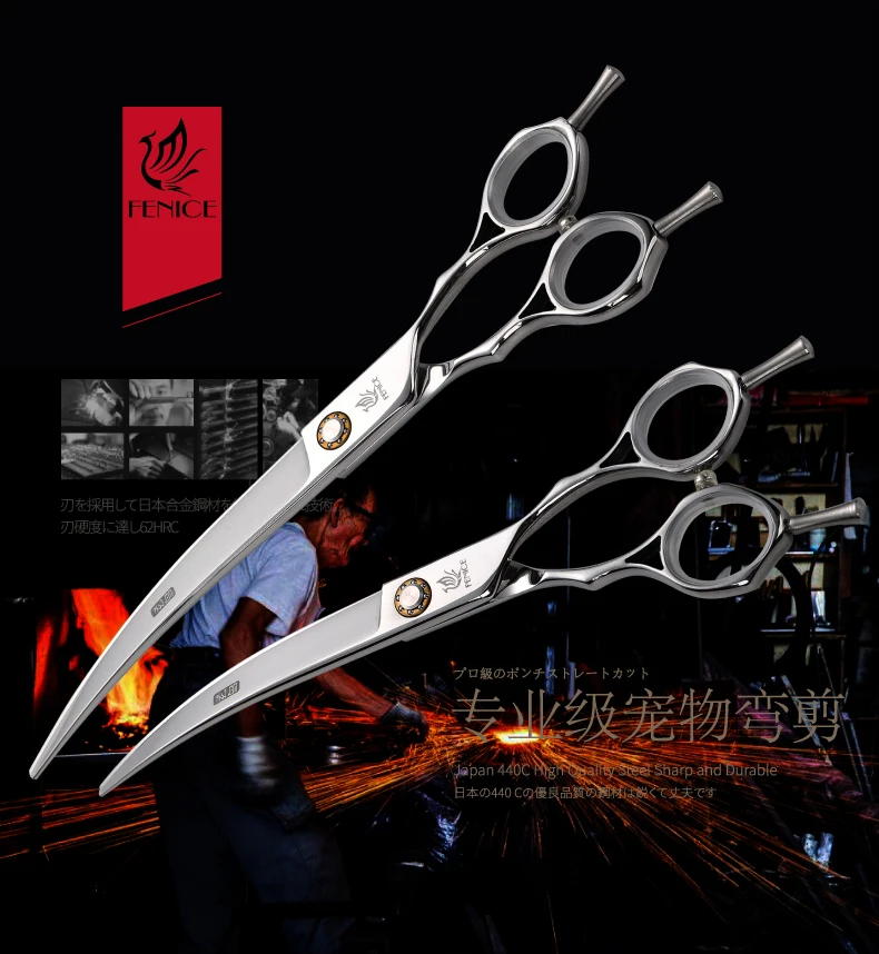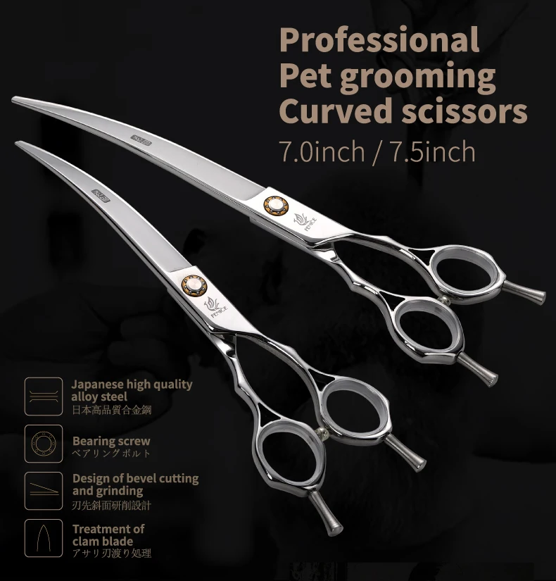 Fenice-Tijeras profesionales de aseo para mascotas, tijeras curvadas de 7,0/7,5 pulgadas, Japón 440C
