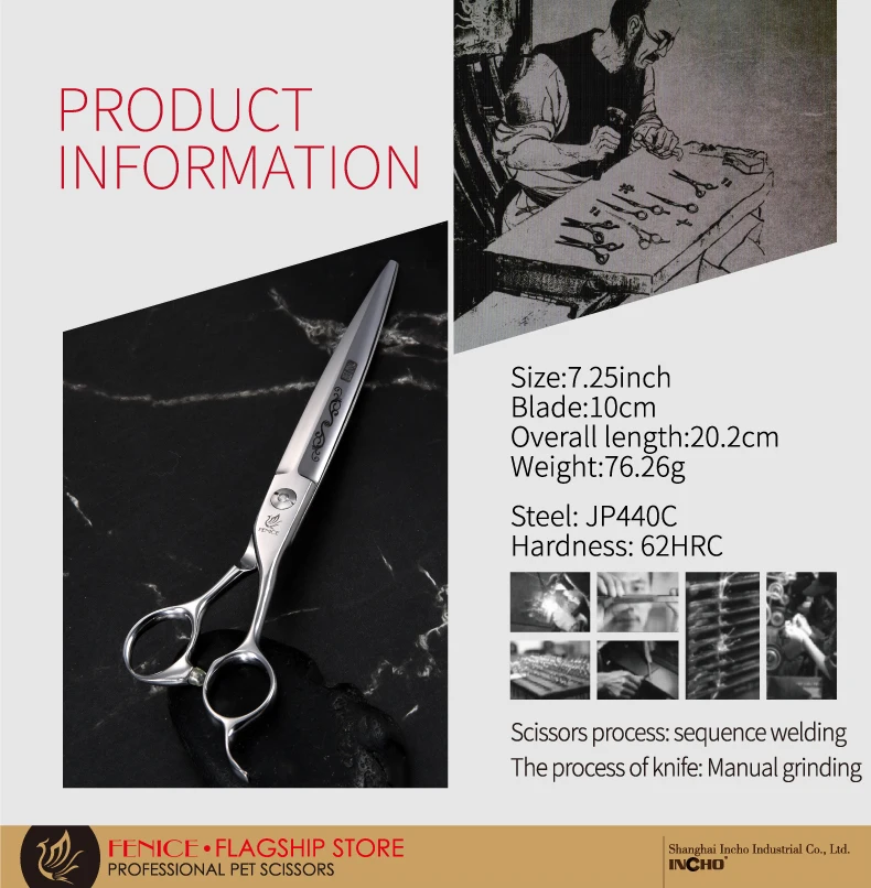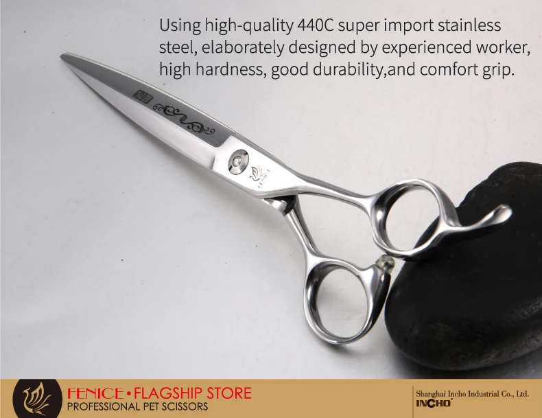 Fenice Tijeras/cizallas profesionales para el cuidado de mascotas de 7,25 pulgadas, tijeras rectas, tijeras para el cuidado de perros y gatos, borde afilado