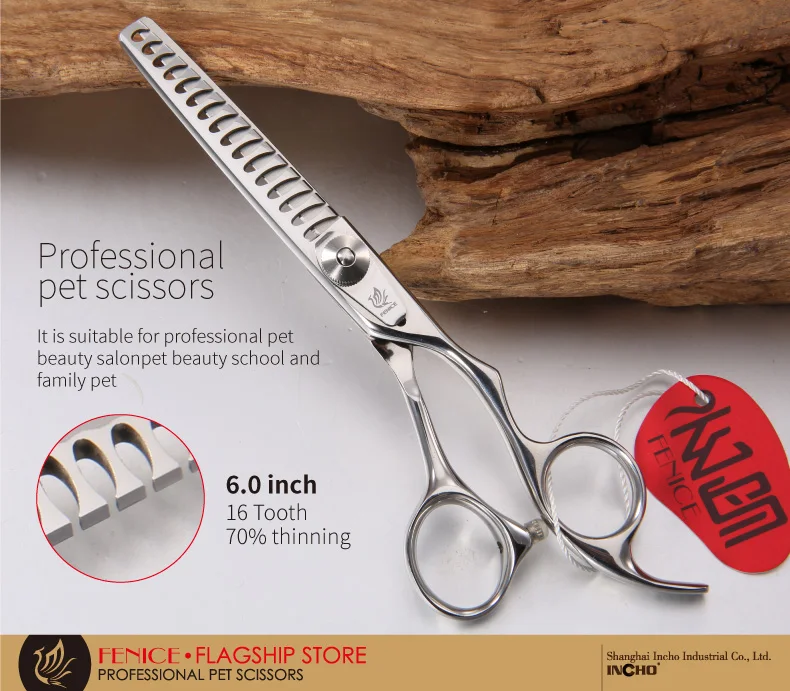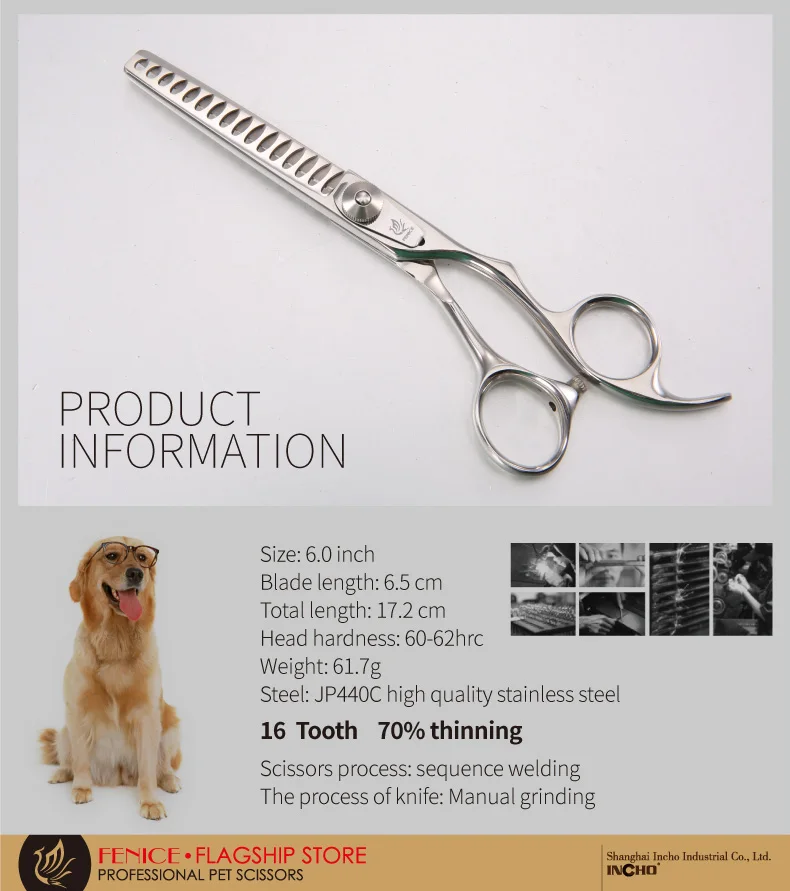 Fenice tijeras profesionales para perros 6 pulgadas 16 dientes 70% tijeras de adelgazamiento tijeras de cuidado de mascotas proveedor de corte de pelo de animales