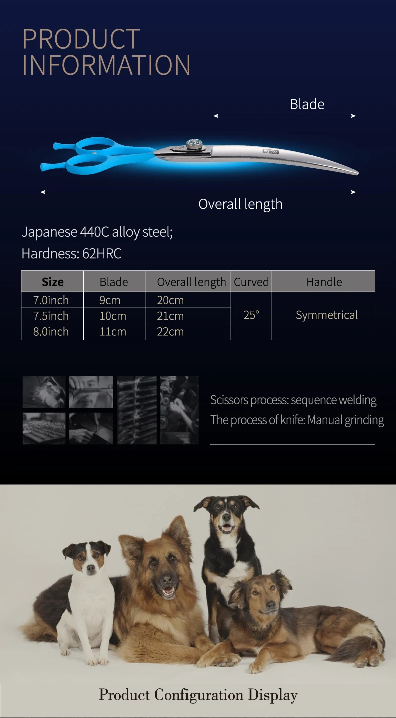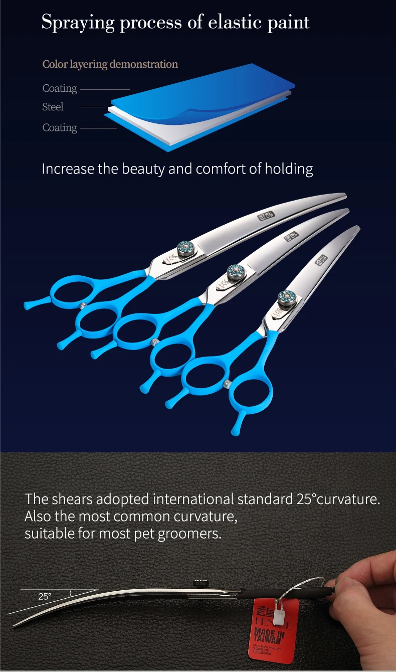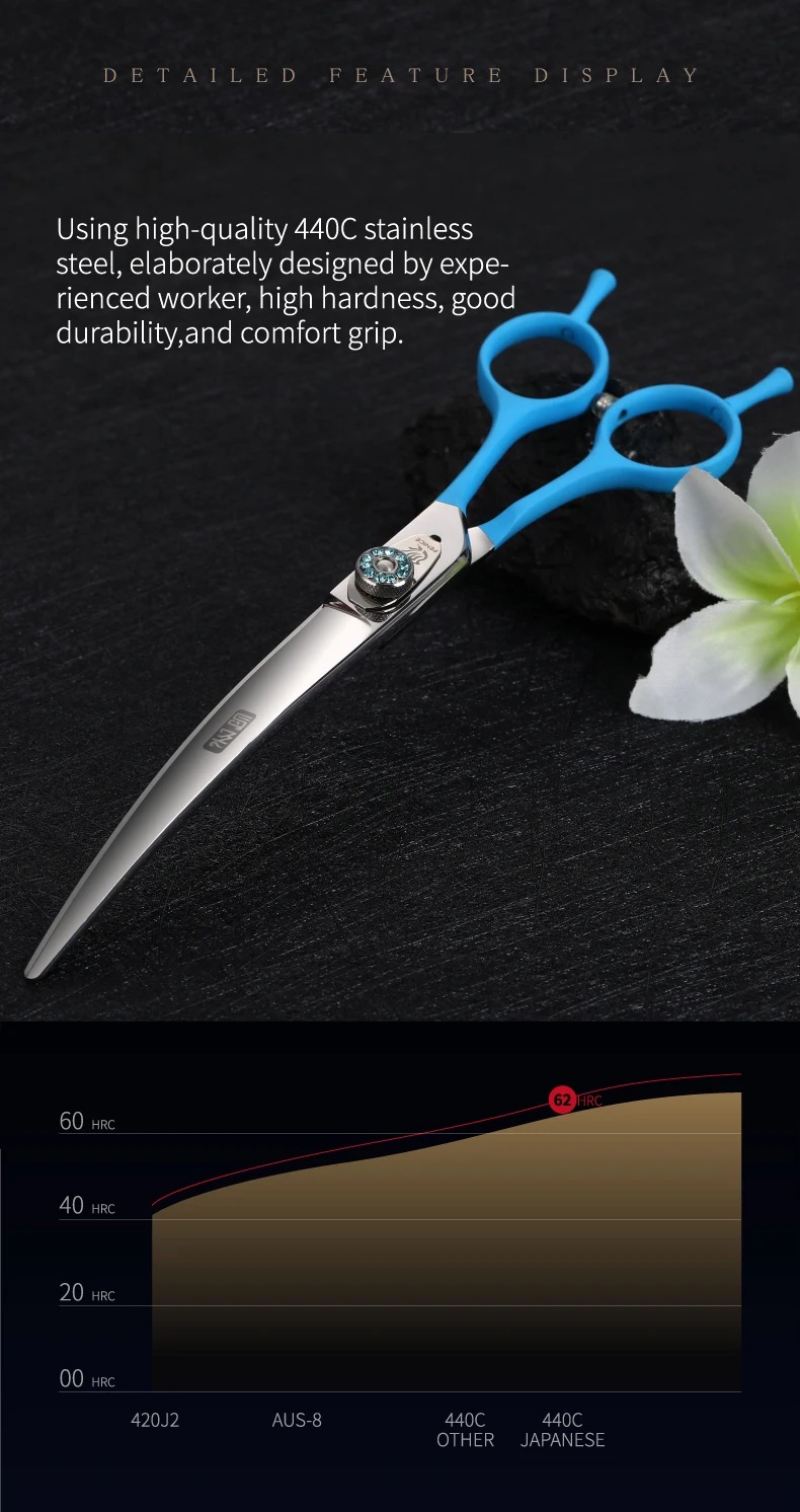 Fenice, tijeras profesionales para el cuidado de mascotas, mano izquierda y derecha, tijeras curvas para perros arriba y abajo, tijeras tesoura cachorro de 7/7.5/8,0 pulgadas