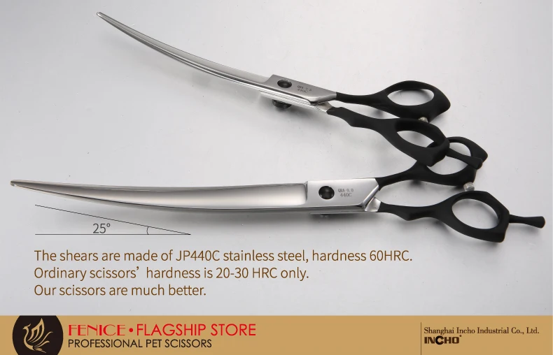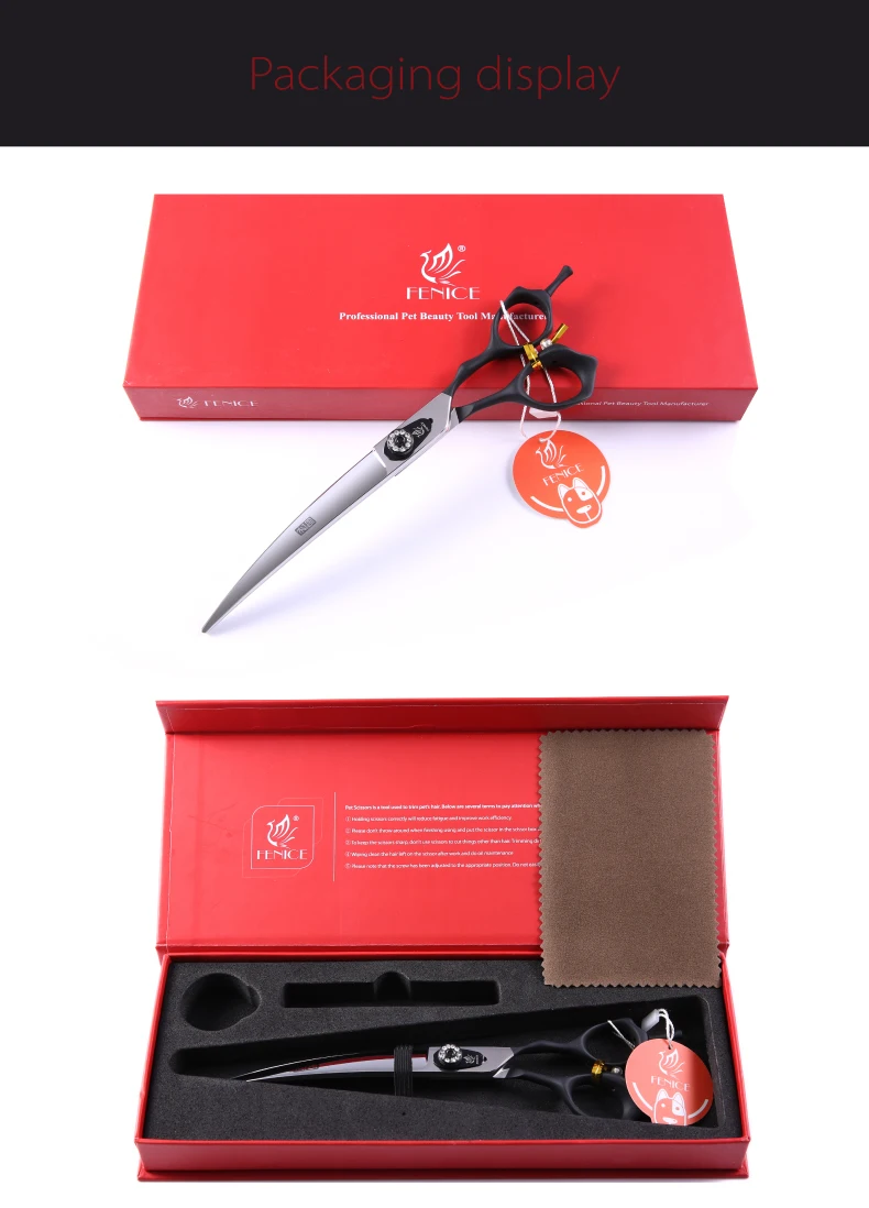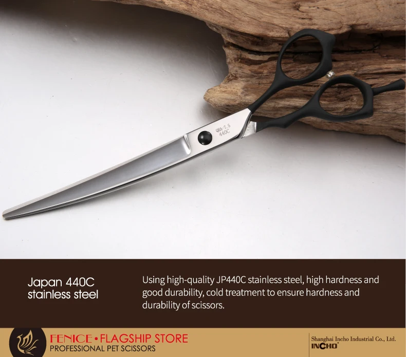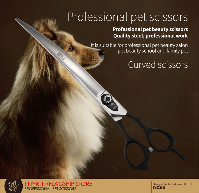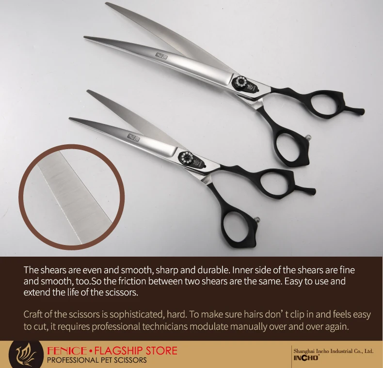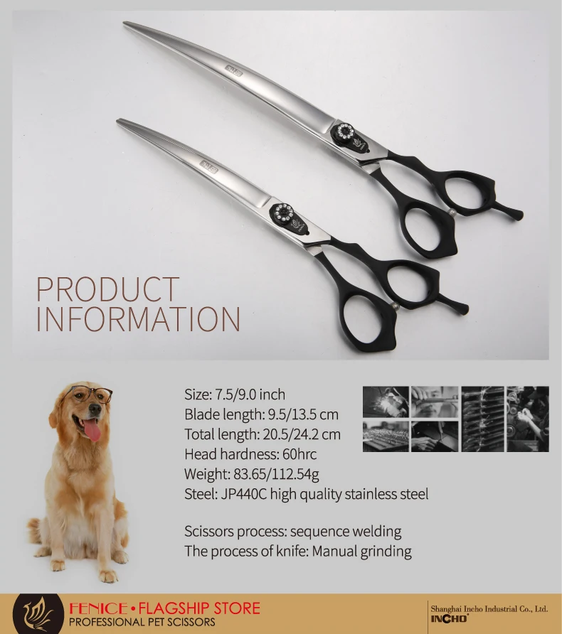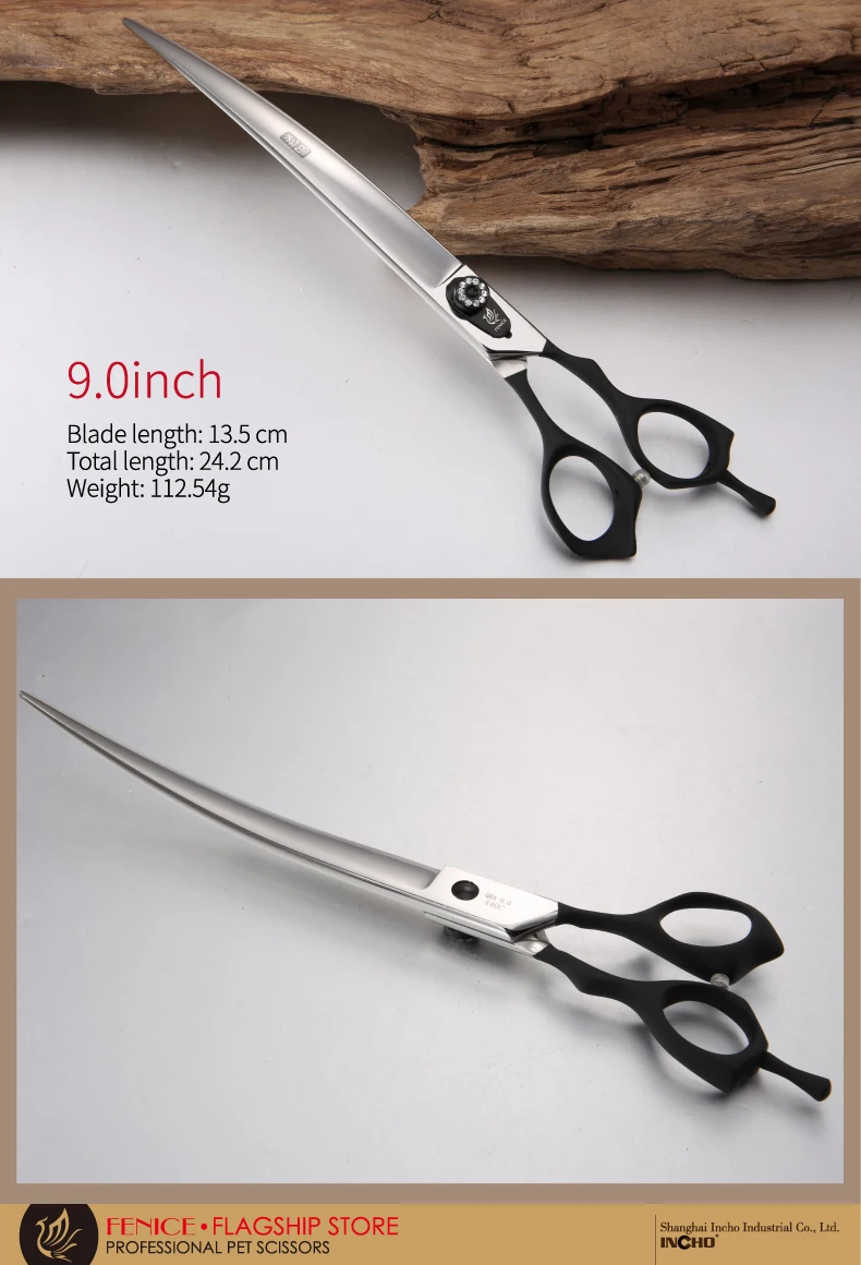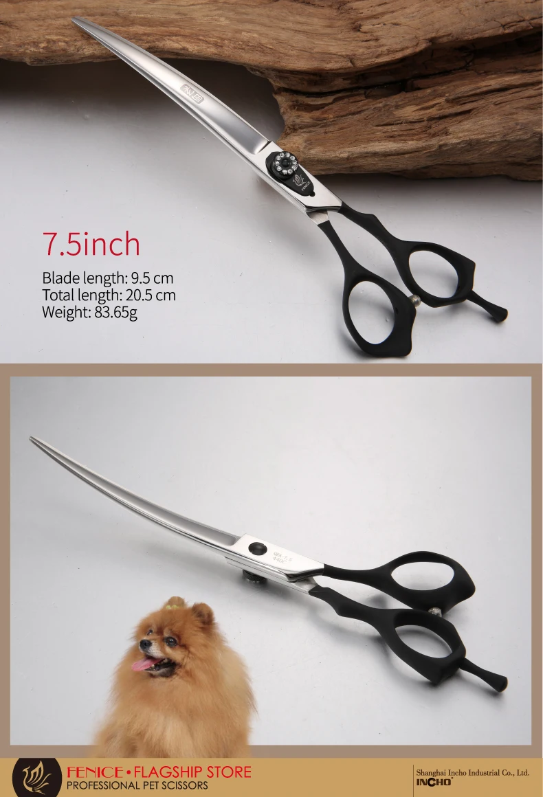 Fenice 7,5, tijeras profesionales para el cuidado de mascotas de 9,0 pulgadas, tijeras de seguridad para perros, tijeras curvas para cortar el pelo con peine