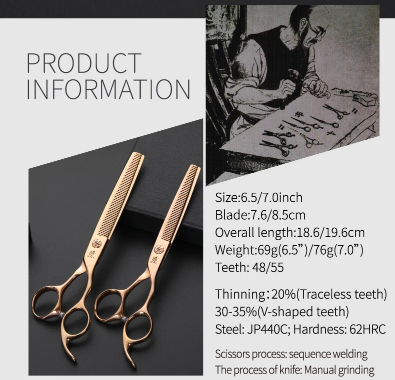 Fenice-Tijeras profesionales para el cuidado de perros y mascotas, herramientas de corte de pelo, 6,5/7,0 pulgadas