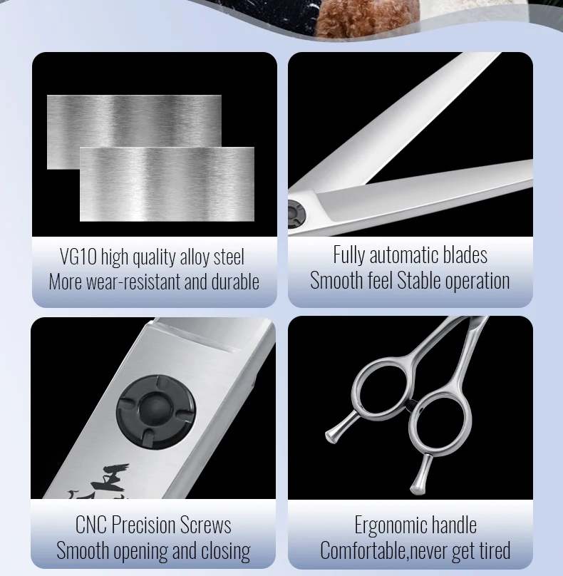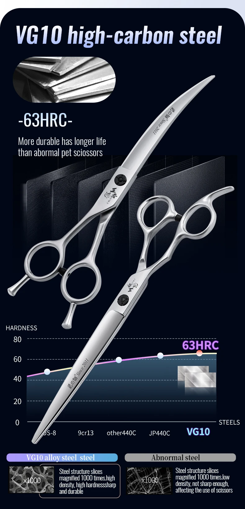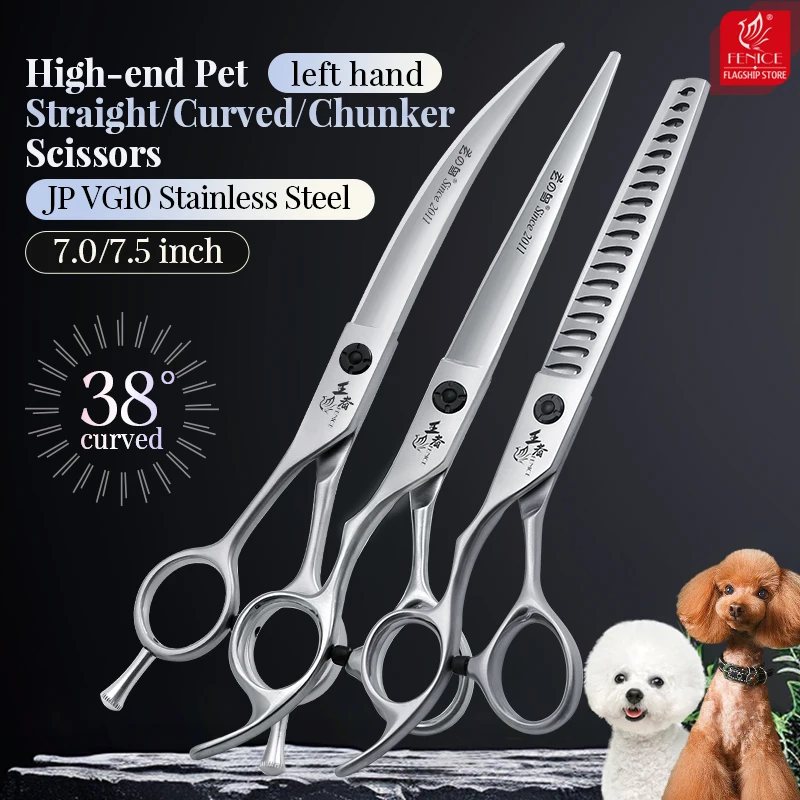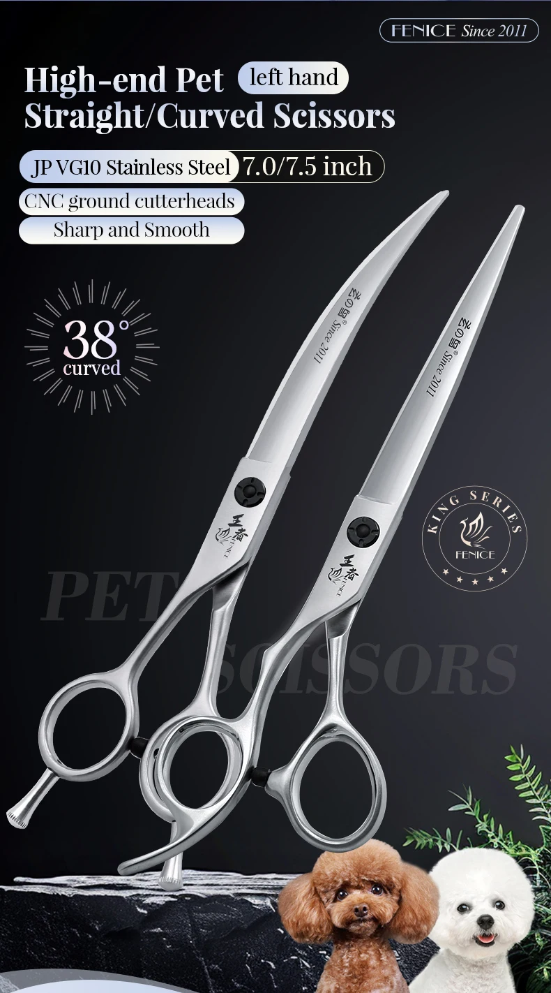 Fenice Professional JP VG10 mano izquierda 7/7, 5 pulgadas curvas/rectas para mascotas, tijeras para el cuidado de perros, tijeras curvas para mascotas, productos para perros