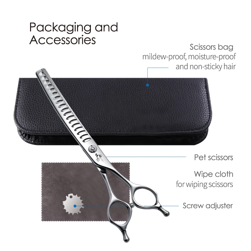 Tijeras profesionales diseñadas específicamente para proporcionar precisión excepcional, durabilidad superior y eficiencia durante el corte y estilizado de pelaje canino y felino. Fabricadas por Fenice con acero JP VG10 de alta calidad y diseño super curvado de 38°, estas tijeras combinan tecnología avanzada, ergonomía y rendimiento para crear las herramientas perfectas que necesitas para realizar cortes precisos, texturizados y acabados profesionales mientras garantizas precisión, seguridad y bienestar durante todas las actividades de peluquería de mascotas.