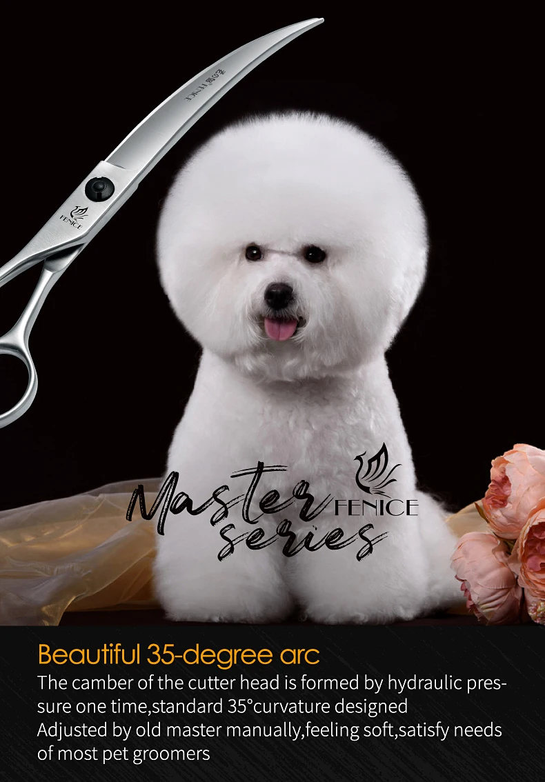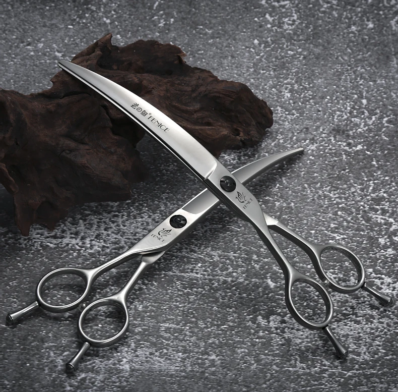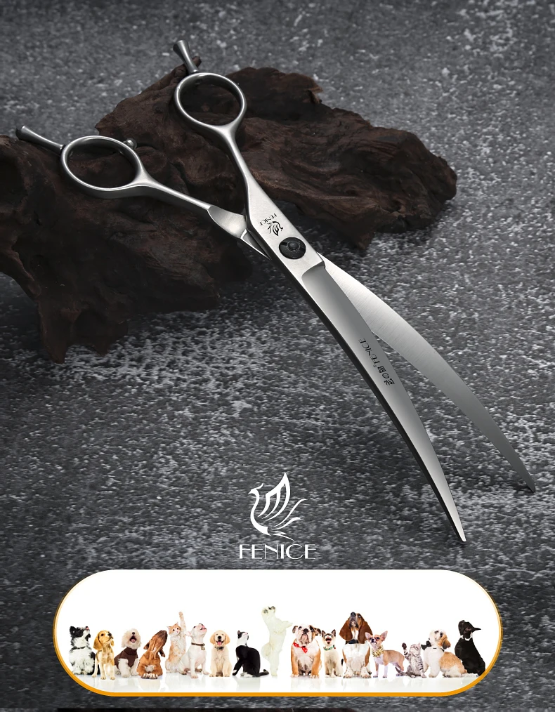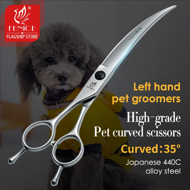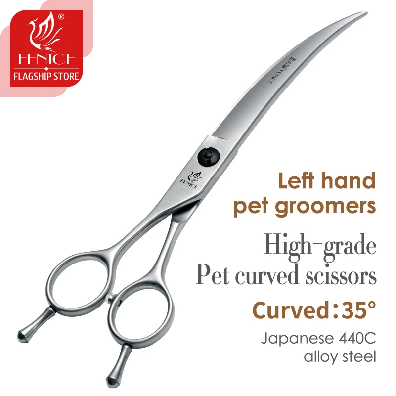 Fenice Professional Left Hand 7/7, 5 pulgadas, tijeras curvas para el cuidado de perros y mascotas, tijeras curvas para mascotas, productos para perros