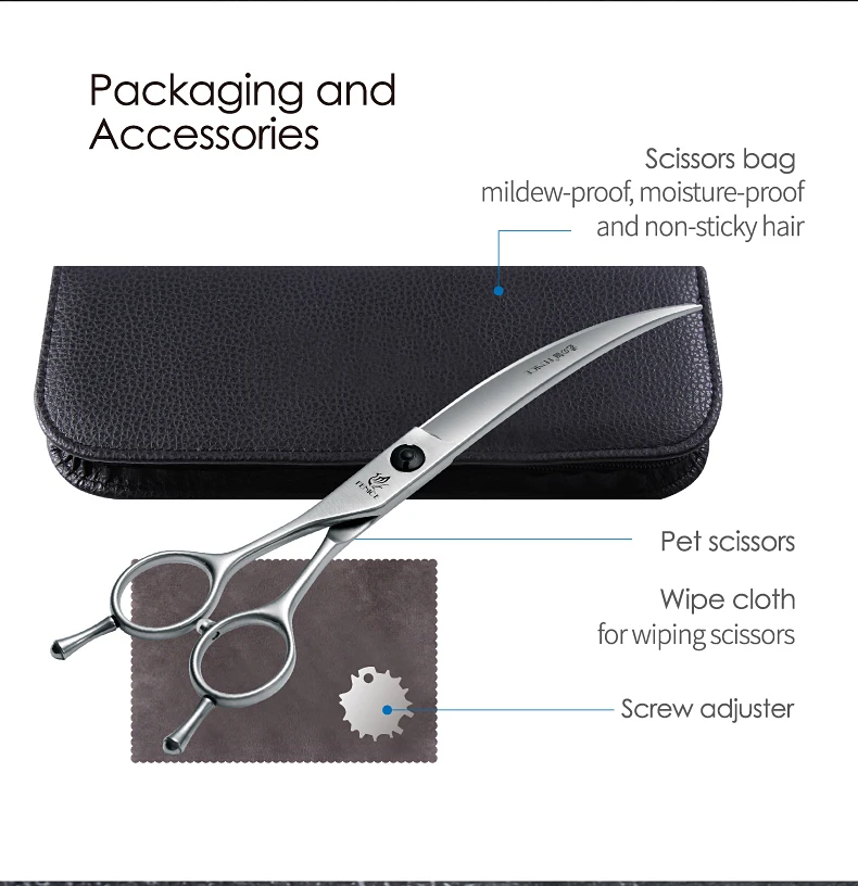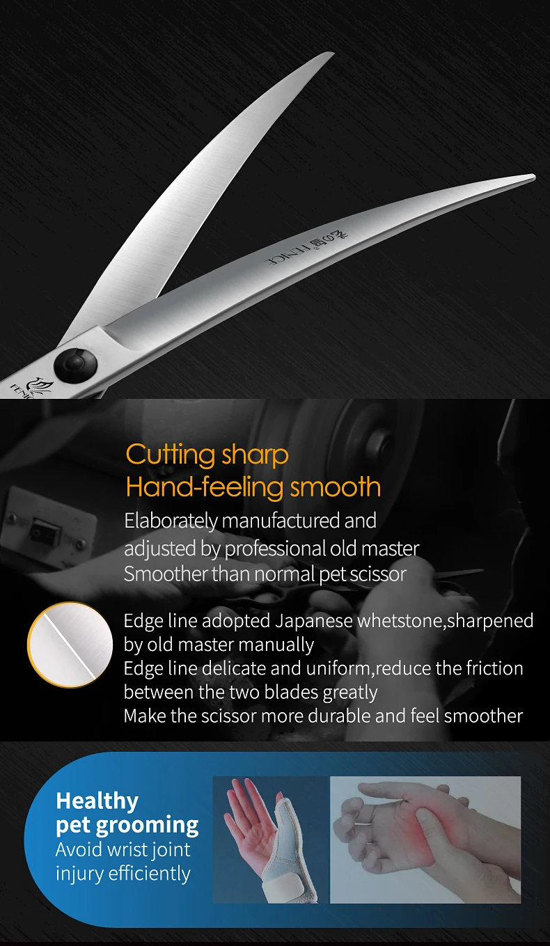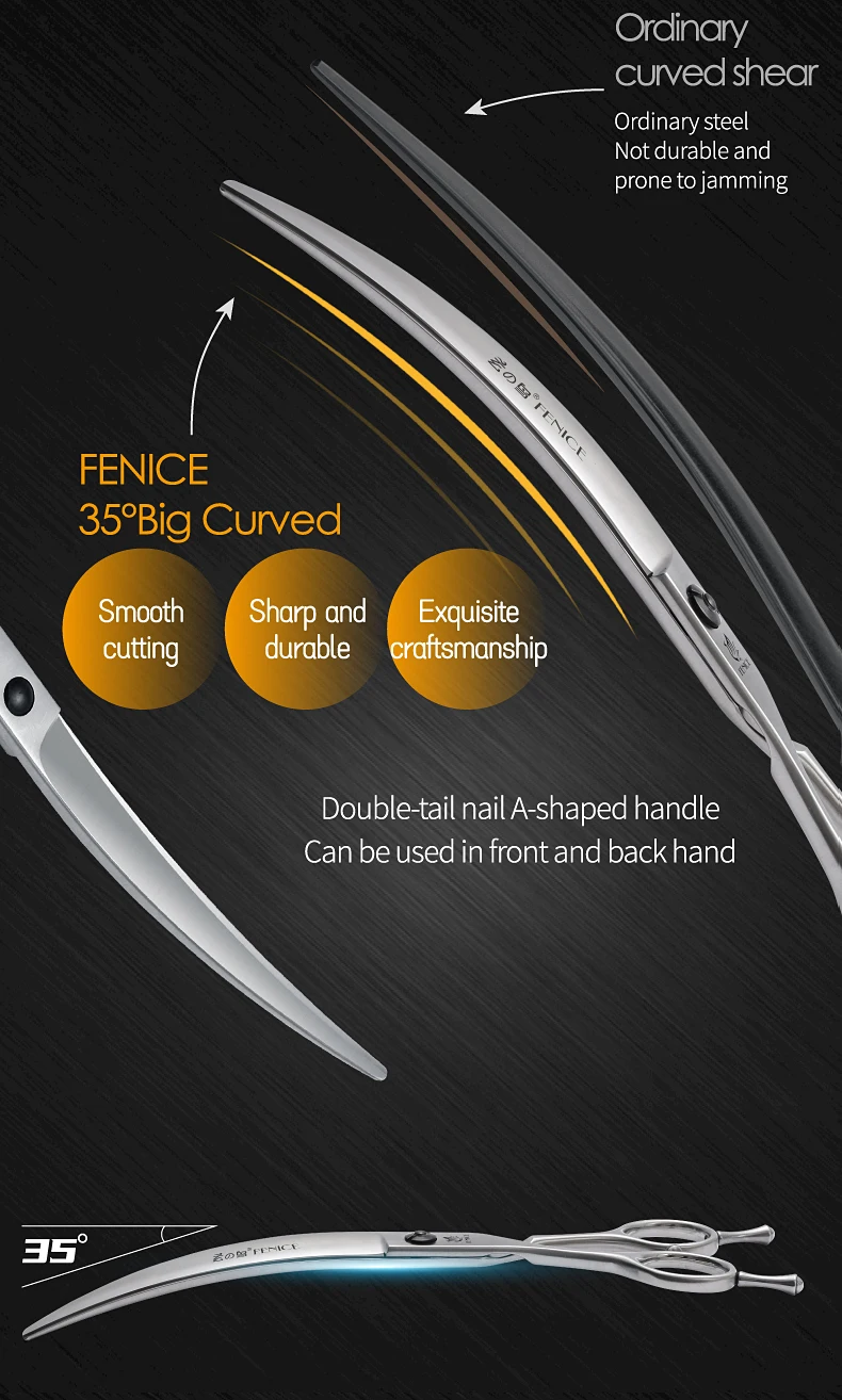 Fenice Professional Left Hand 7/7, 5 pulgadas, tijeras curvas para el cuidado de perros y mascotas, tijeras curvas para mascotas, productos para perros