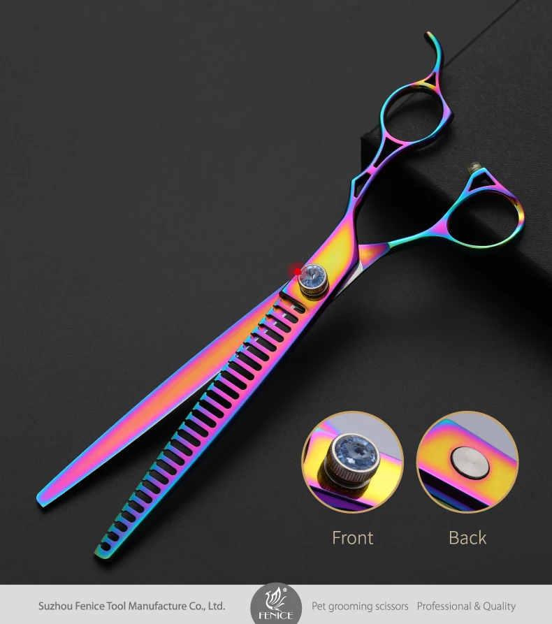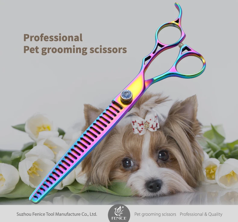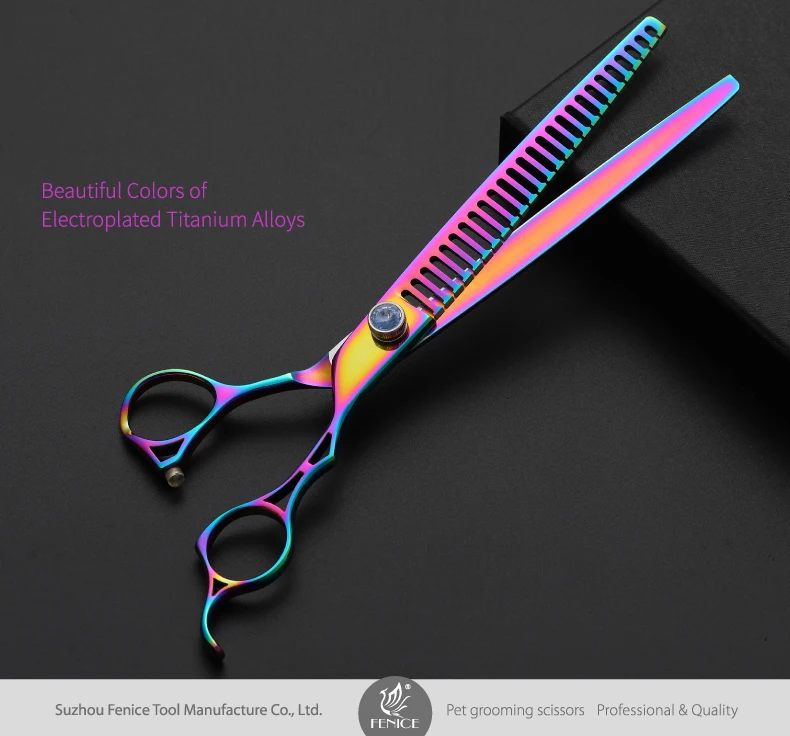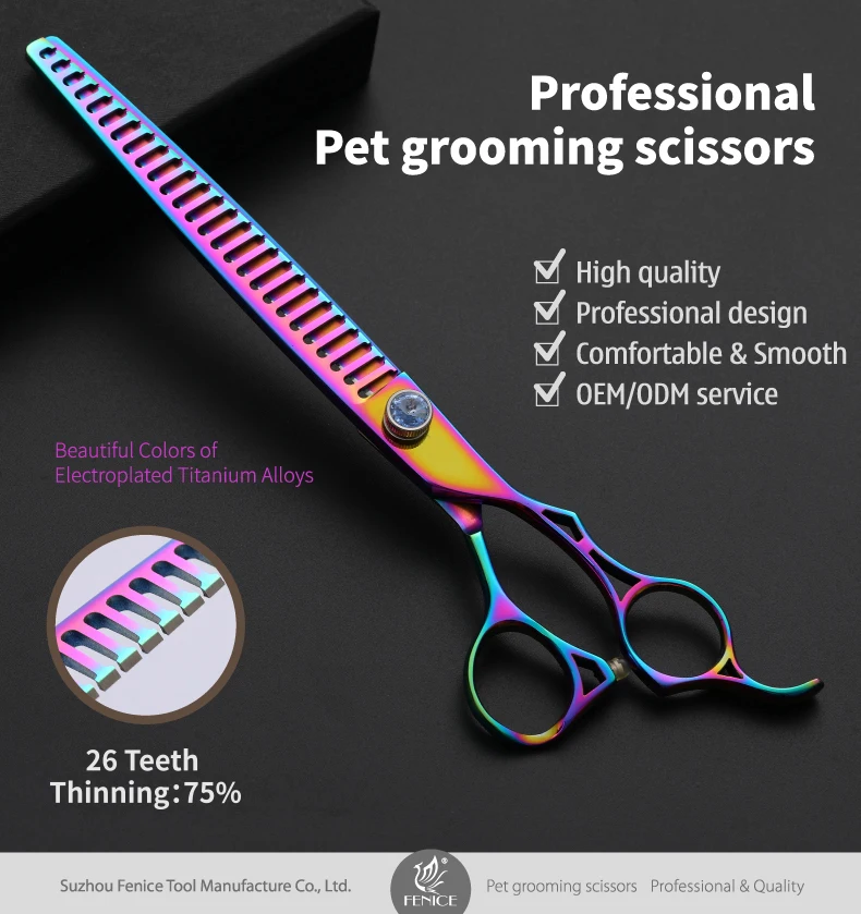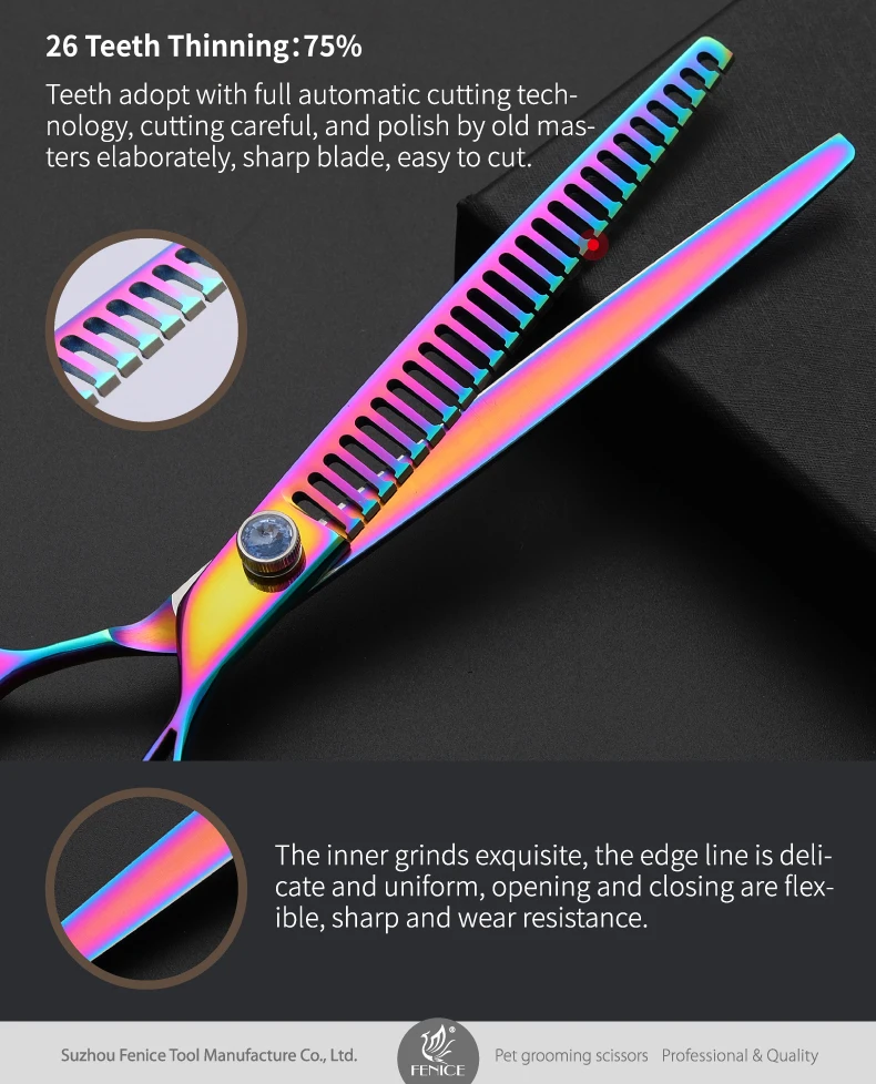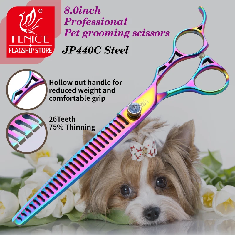 Fenice-tijeras profesionales para mascotas de 8 pulgadas, desbaste de perros, tiburón, 26 dientes para perros, corte de pelo eficiente, tasa de adelgazamiento del 75%