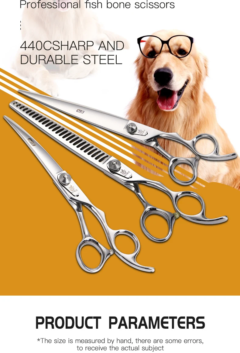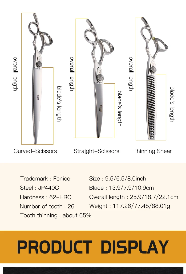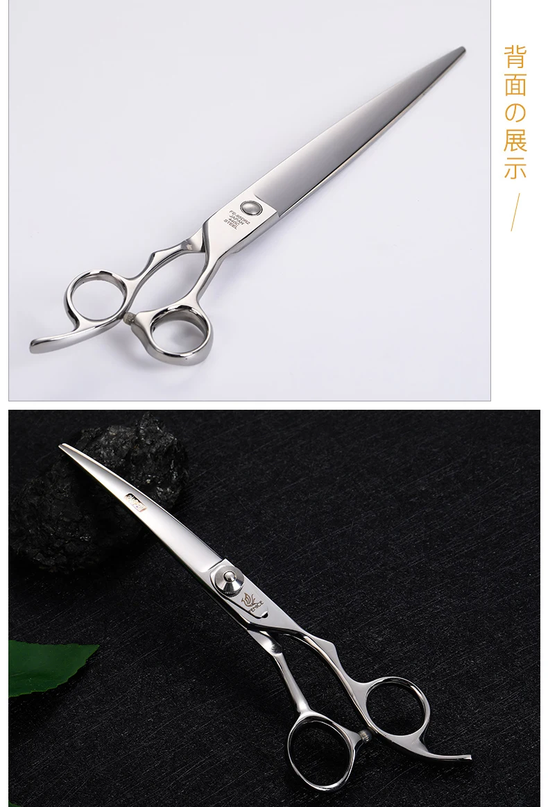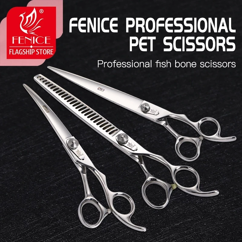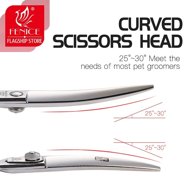 Fenice tijeras profesionales para perros 6,5 pulgadas curvadas 8 pulgadas más delgadas 9,5 pulgadas tijeras rectas para el cuidado de mascotas herramientas de corte de pelo para el cuidado de los animales