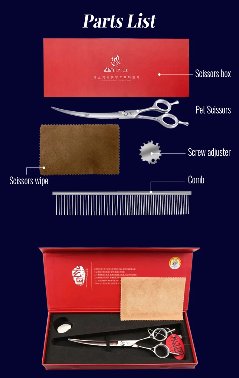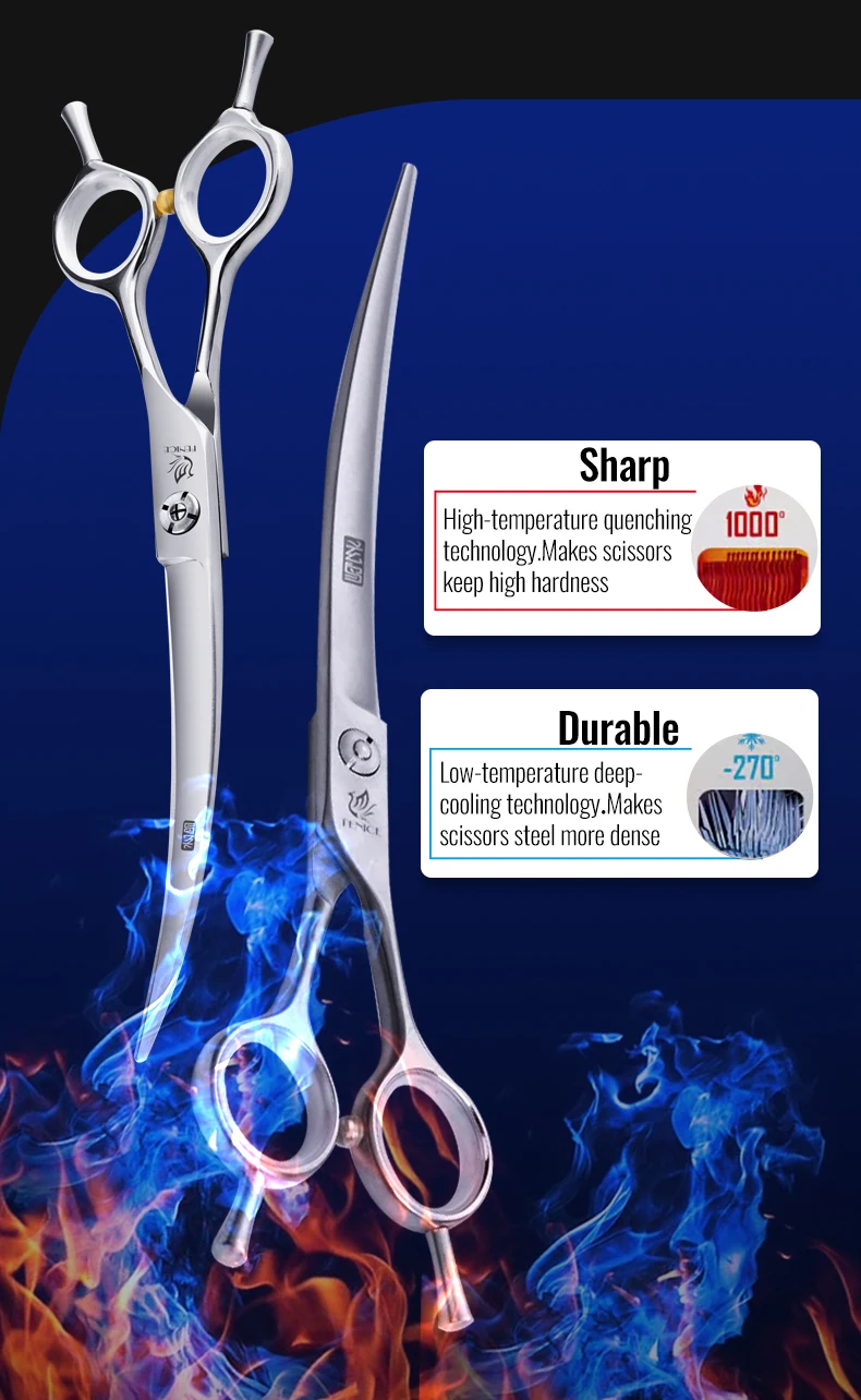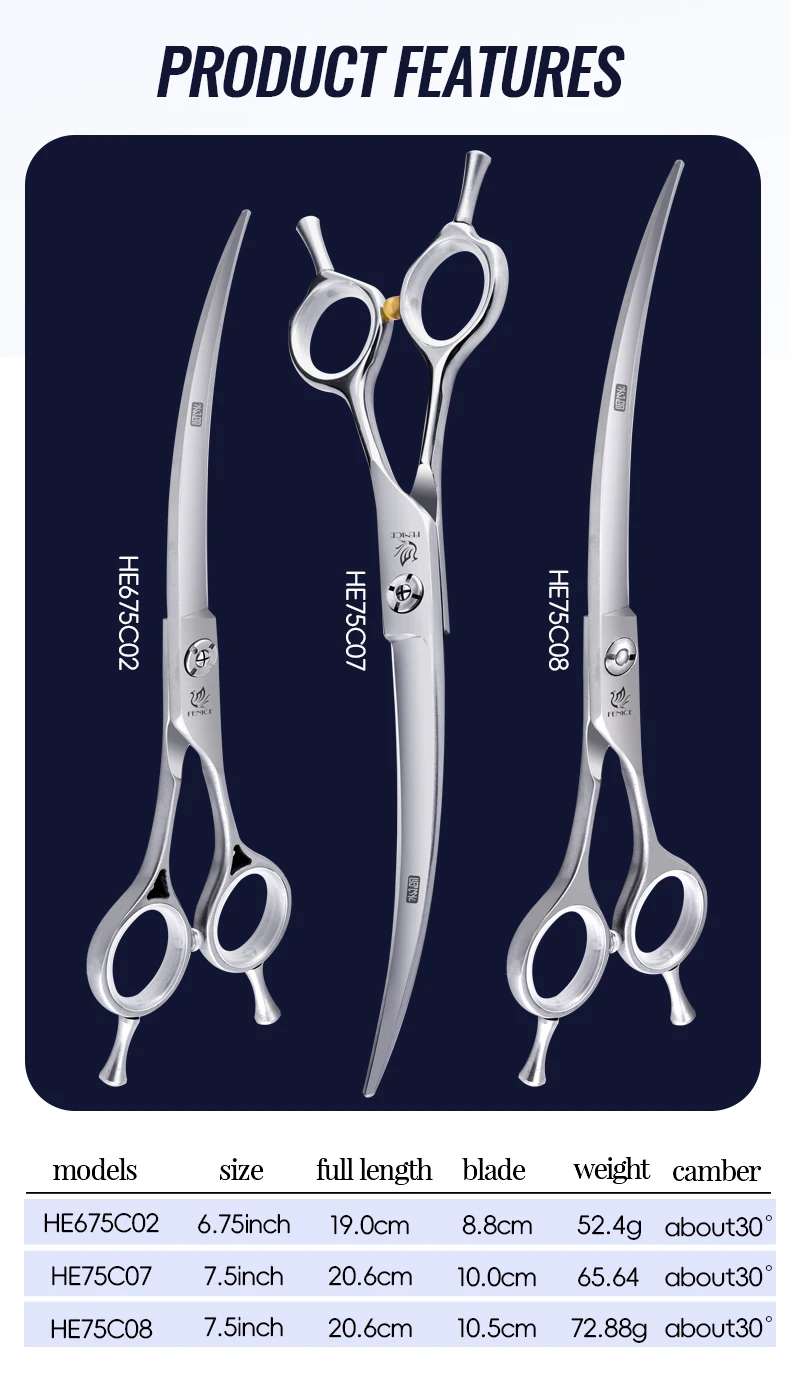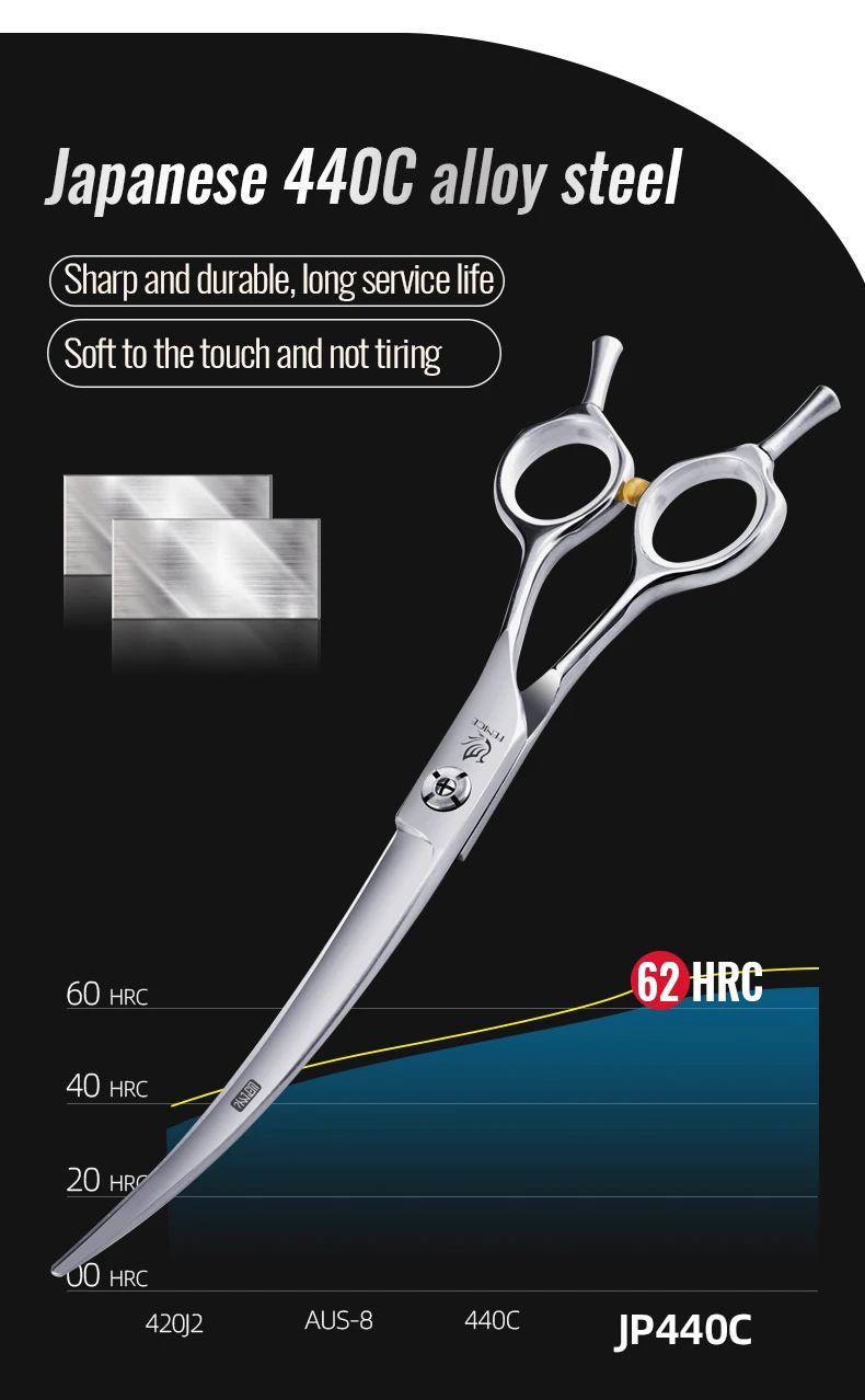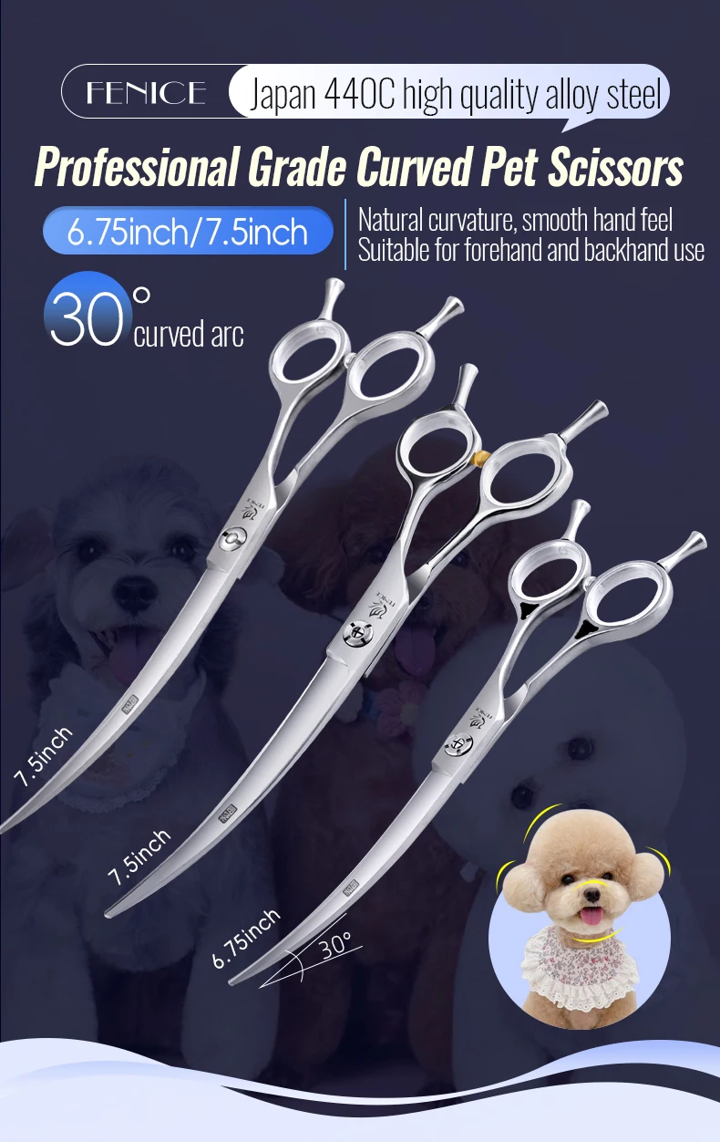 Fenice-tijeras profesionales para perros, hoja curvada de 6,75/7,5 pulgadas, tijeras de aseo para perros, tijeras de recorte para mascotas, makas