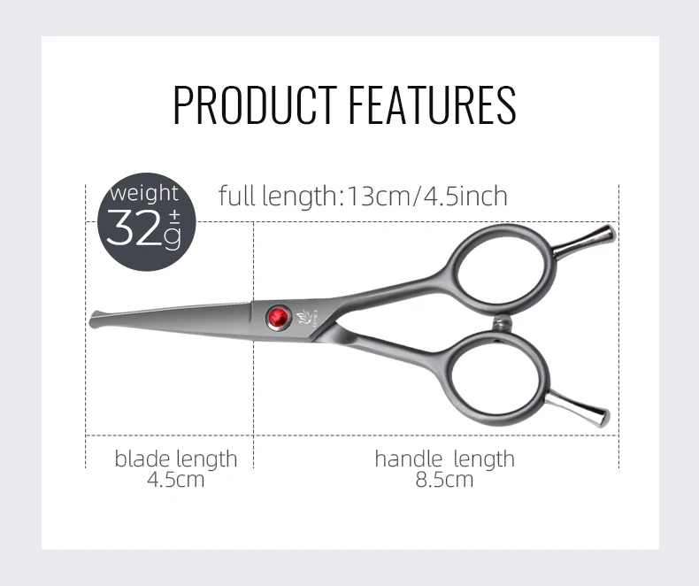 Fenice-Tijeras profesionales de punta redonda para mascotas, accesorio de aseo profesional de 4,5 pulgadas, curvadas y ajustadas, para cara, oreja y nariz