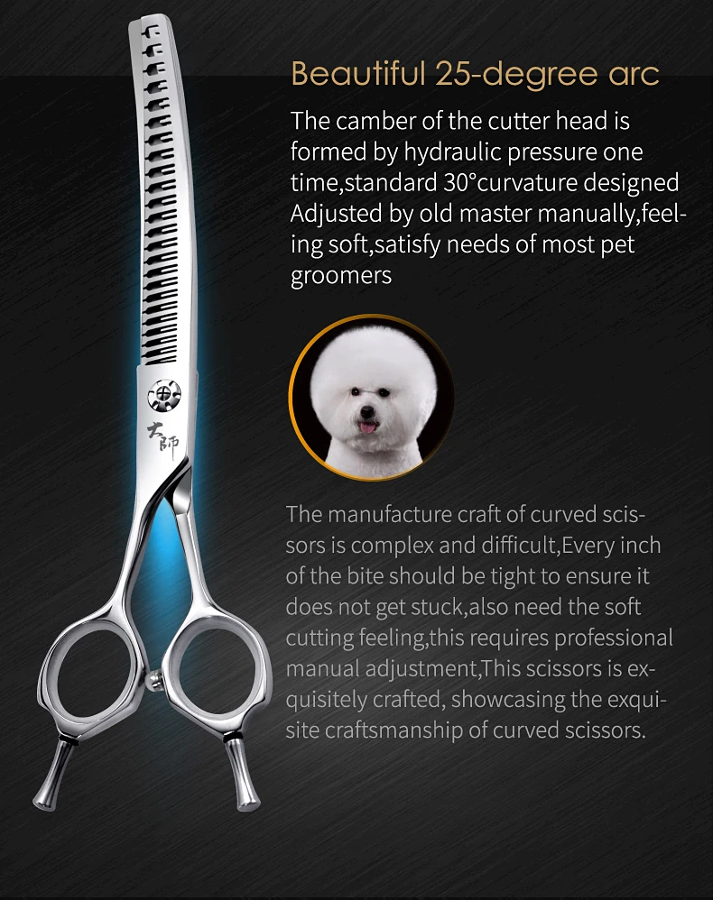 Fenice tijeras profesionales para zurdos JP440C de 7 pulgadas, tijeras curvas para perros, tijeras de adelgazamiento Natural para el cuidado de mascotas, tasa más delgada del 75%