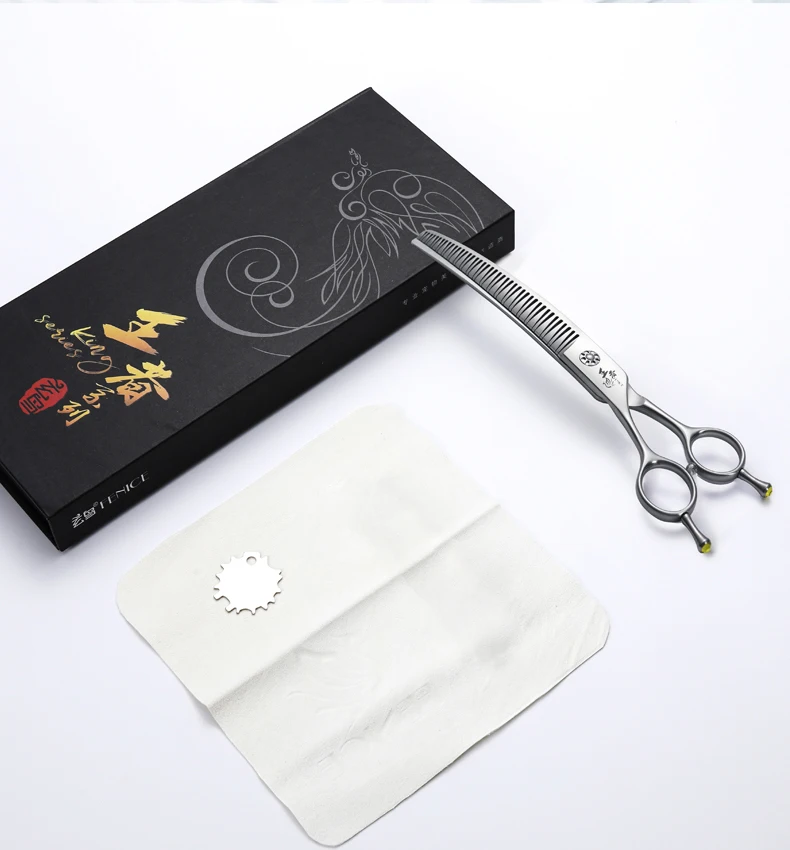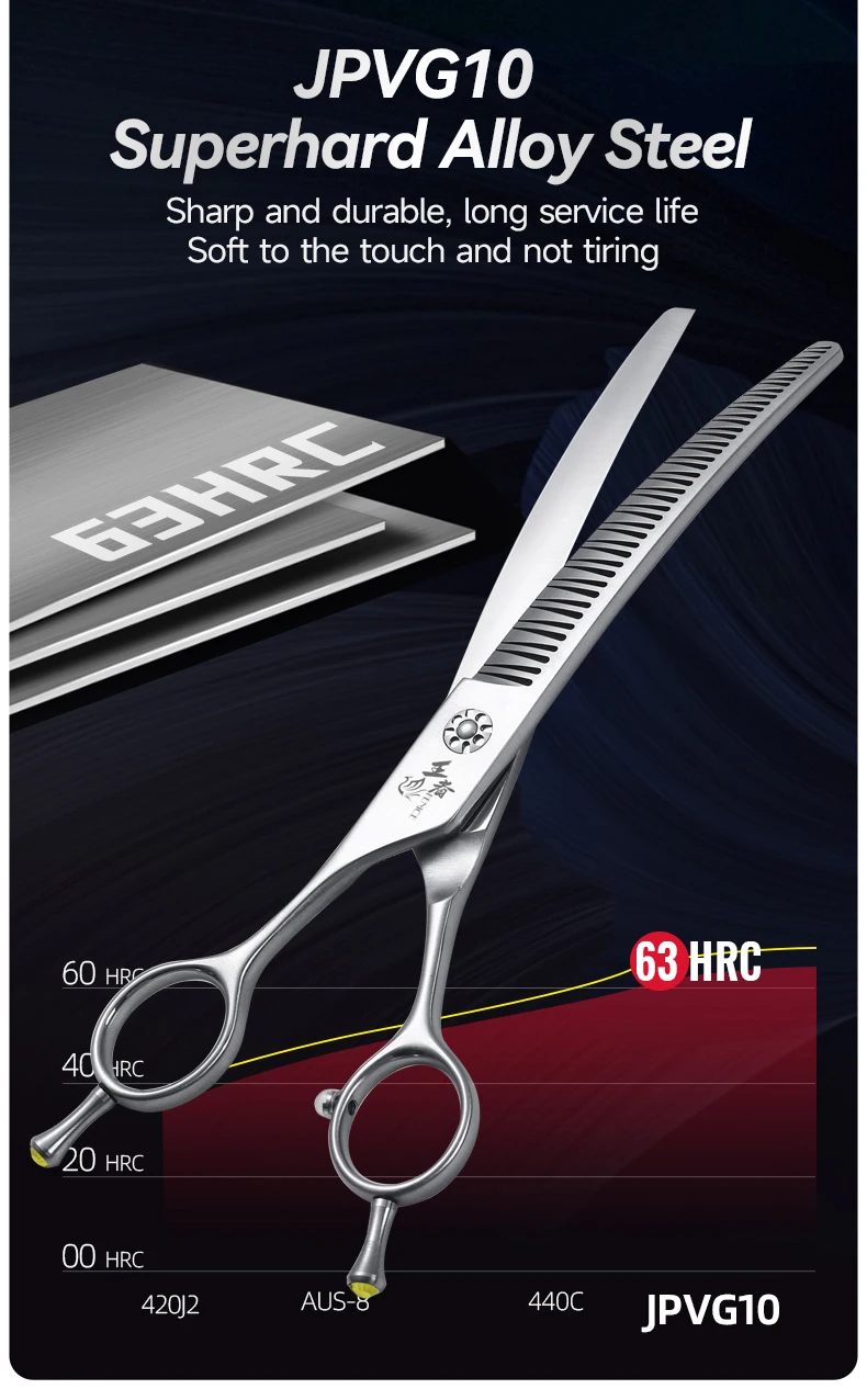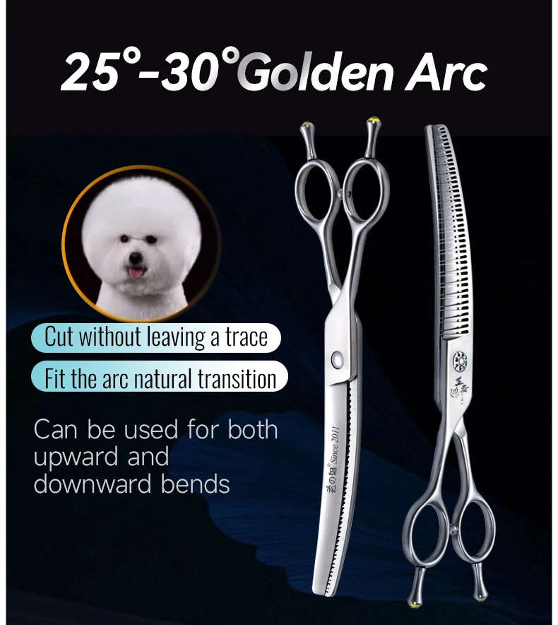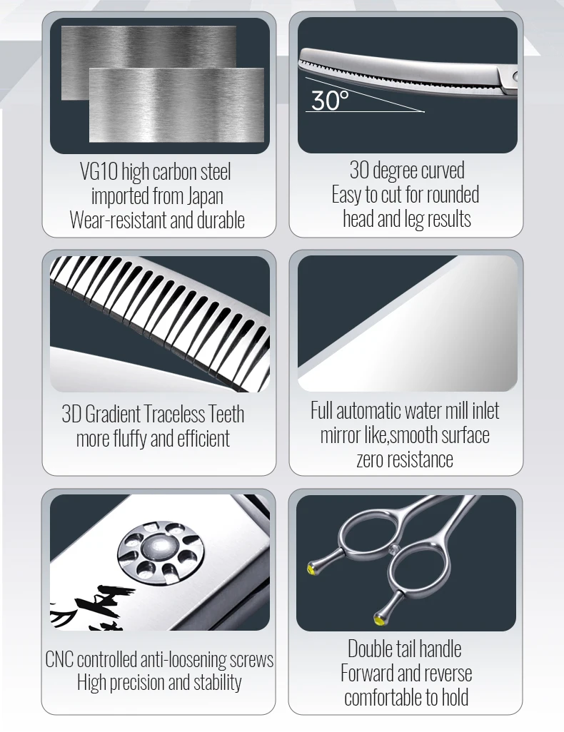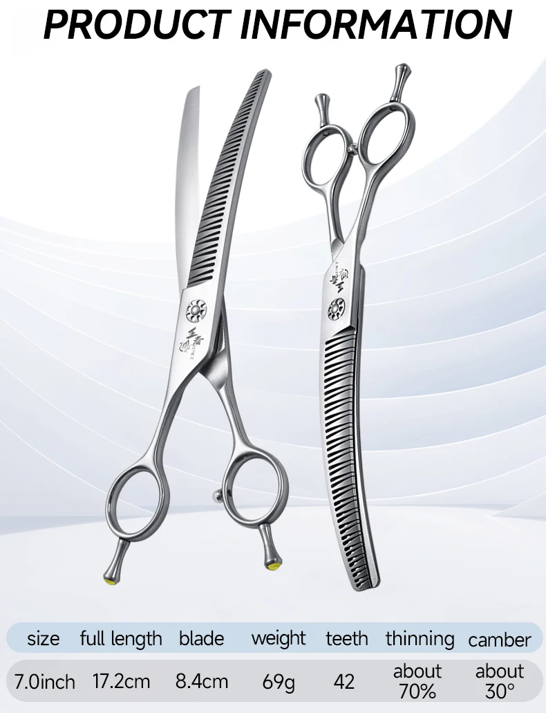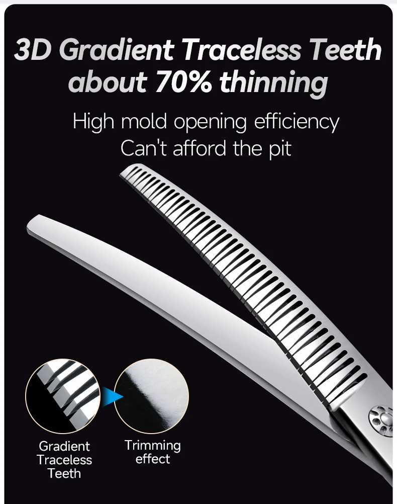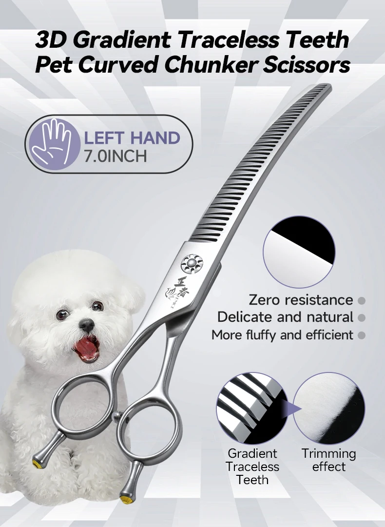 Fenice VG10 mano izquierda 7 pulgadas 3D dientes sin rastro tijeras curvas para el cuidado de perros tijeras de peluquería naturales para caninos 70%