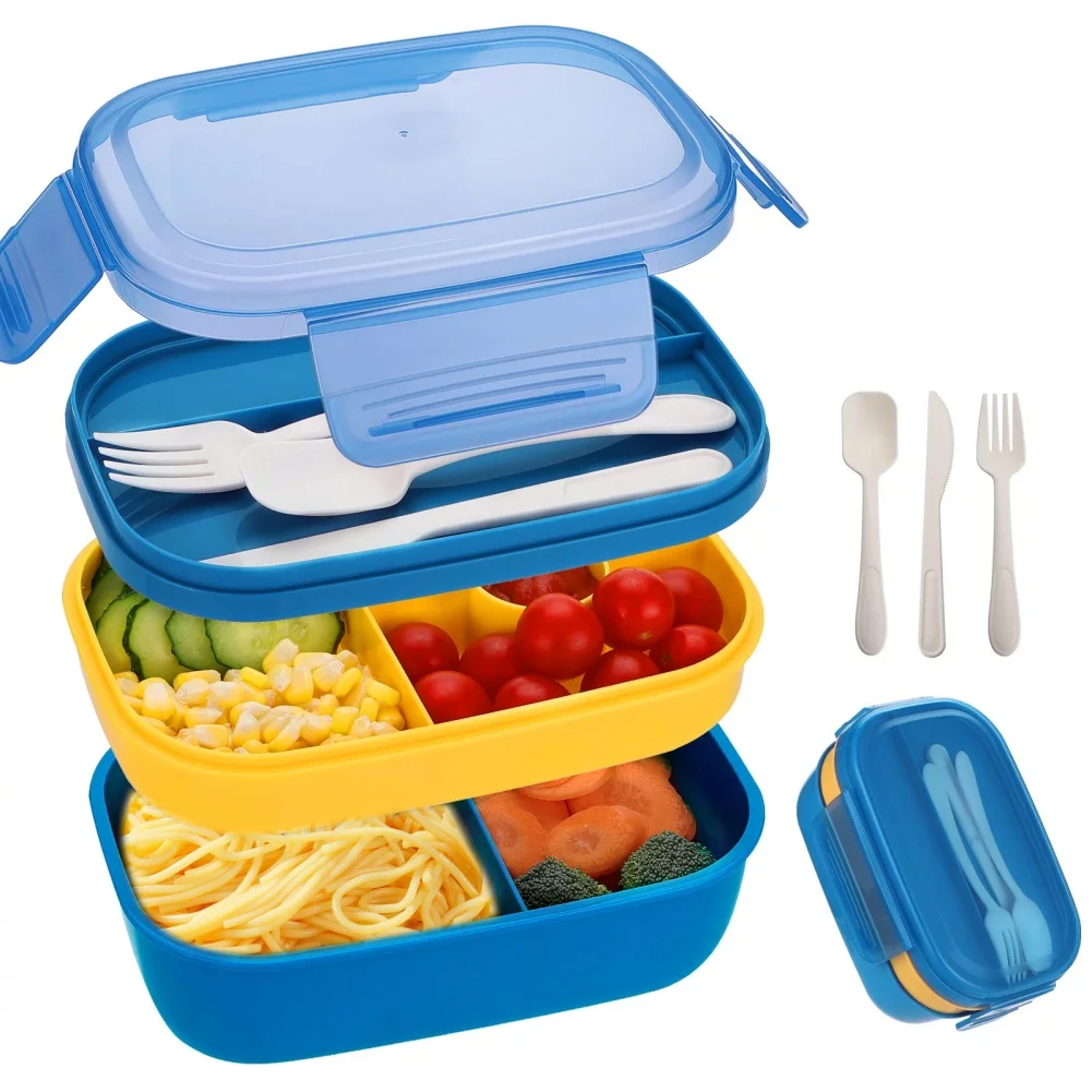 -- Caja Bento grande de estilo moderno: Nuestra fiambrera Bento Box tiene una capacidad de 1,9 litros, con un diseño apilable de 3 capas, puede colocar una variedad de platos principales, pasta, carne y sushi, frutas, verduras, aperitivos, pasteles, frutos secos, Etc. El diseño moderno no solo ayuda a hombres y mujeres a mantener una dieta saludable y equilibrada, sino que también permite que niñas y niños reciban una nutrición integral