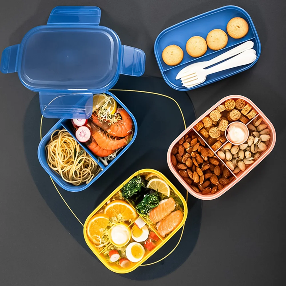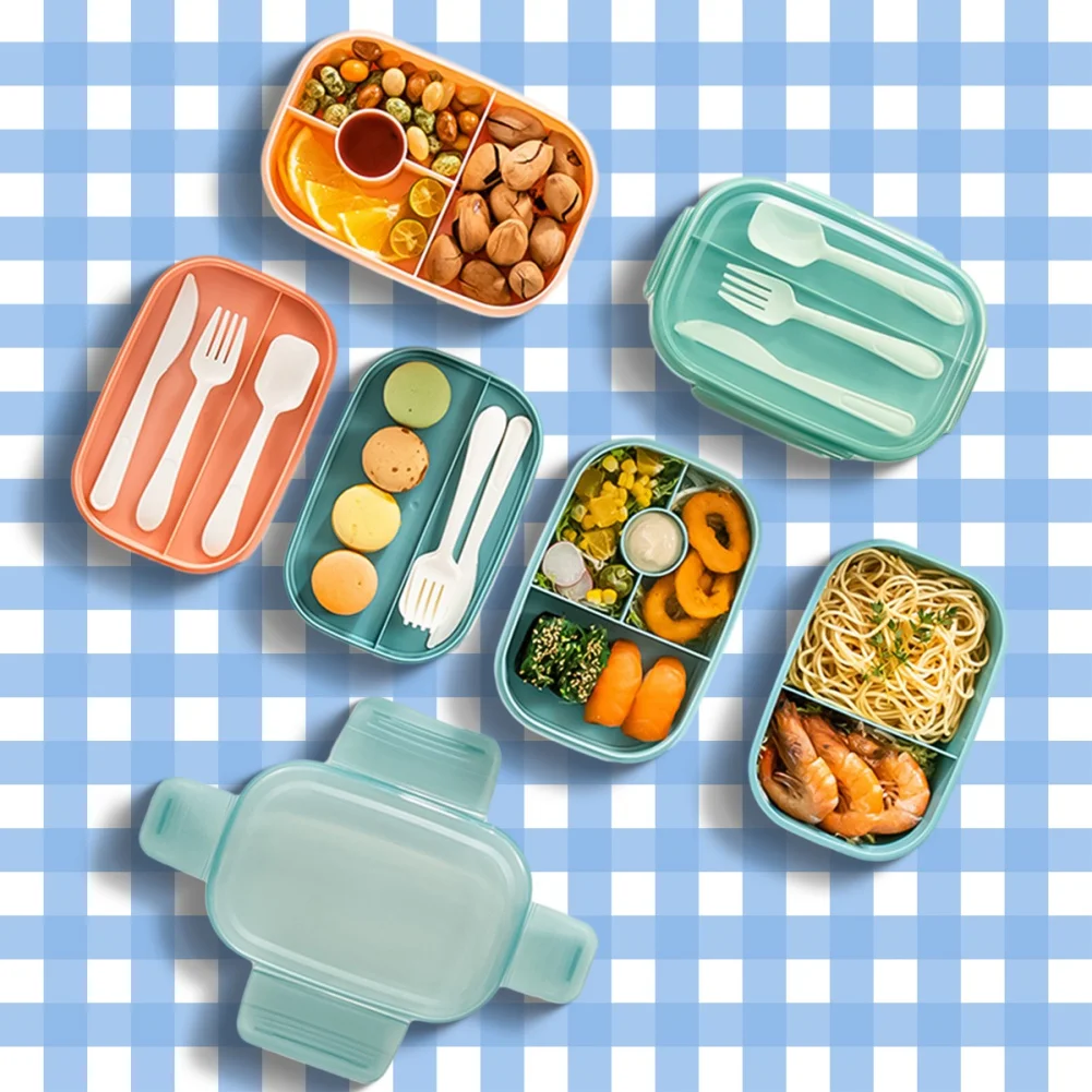 -- Fiambrera Bento Box todo en uno-Este contenedor de preparación de comidas tiene 8 compartimentos para ayudar a mantener los alimentos, las frutas y los bocadillos crujientes y deliciosos durante horas. El tamaño de la fiambrera es ligero (14,5 21,5x10cm). Perfecto para oficina, gimnasio, picnic, camping e incluso viajes cortos. Con cucharas, cuchillos y tenedores, y la vajilla está completa, lo que hace que sea más conveniente comer