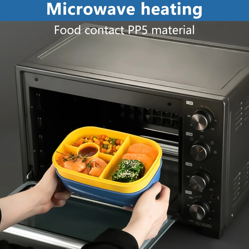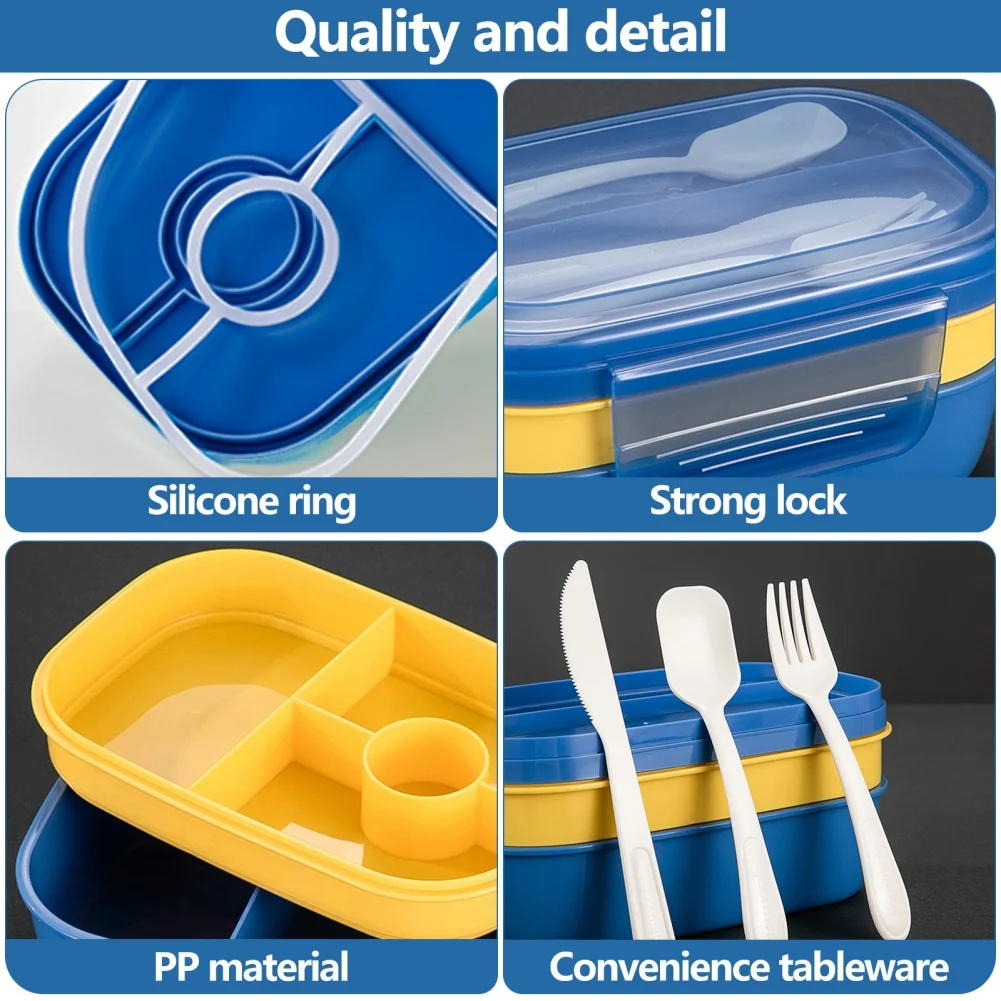 -- Seguro y a prueba de fugas: el material principal es PP de grado alimenticio, sin BPA, inodoro, adecuado para el uso diario de niños y adultos. Esta fiambrera a prueba de fugas es muy fácil de usar, con un sello de silicona de alta calidad y 4 Cierres, no manchará la comida durante el transporte. La parte inferior de la caja tiene un diseño curvo, que es más fácil de limpiar que las cajas cuadradas y rectangulares. Es su fiambrera ideal y también una fiambrera Bento reutilizable