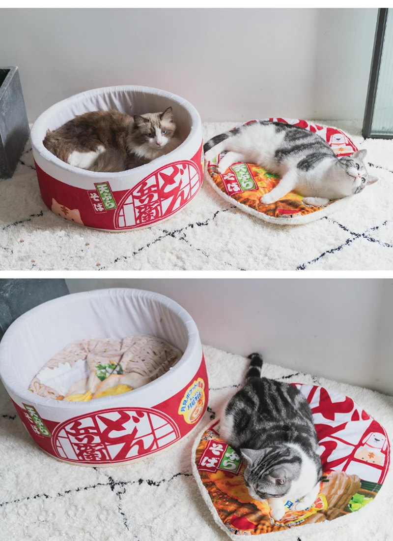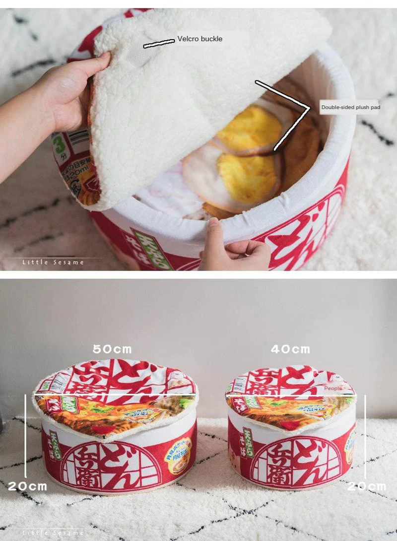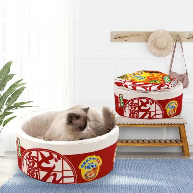 ¡Cama de gatos/mascotas de copa de ramen de felpa suave japonesa de estilo único súper kawaii!