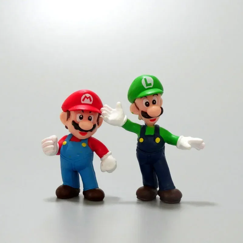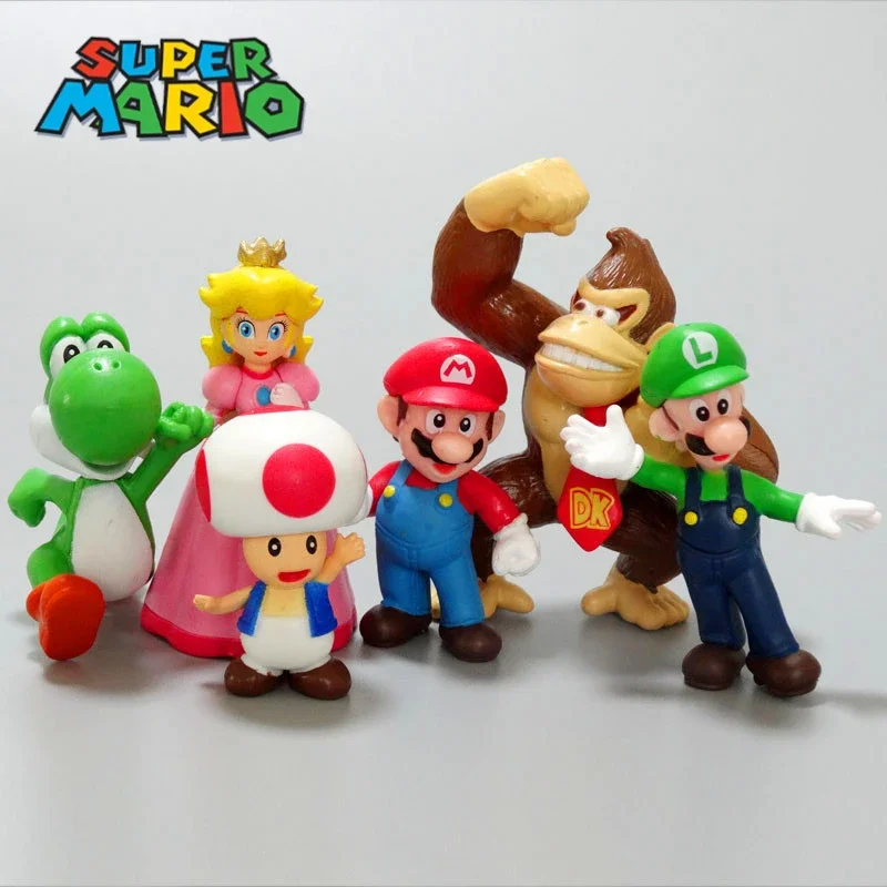 Figuras de acción de Super Marios Bros Kawaii Yoshi Peach Toad Donkey Kong, modelo de figura de Anime, muñecas, decoración de pasteles, juguetes para niños, regalo, 6 uds.