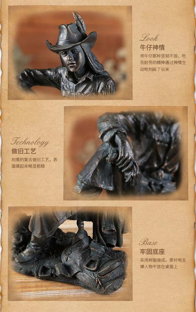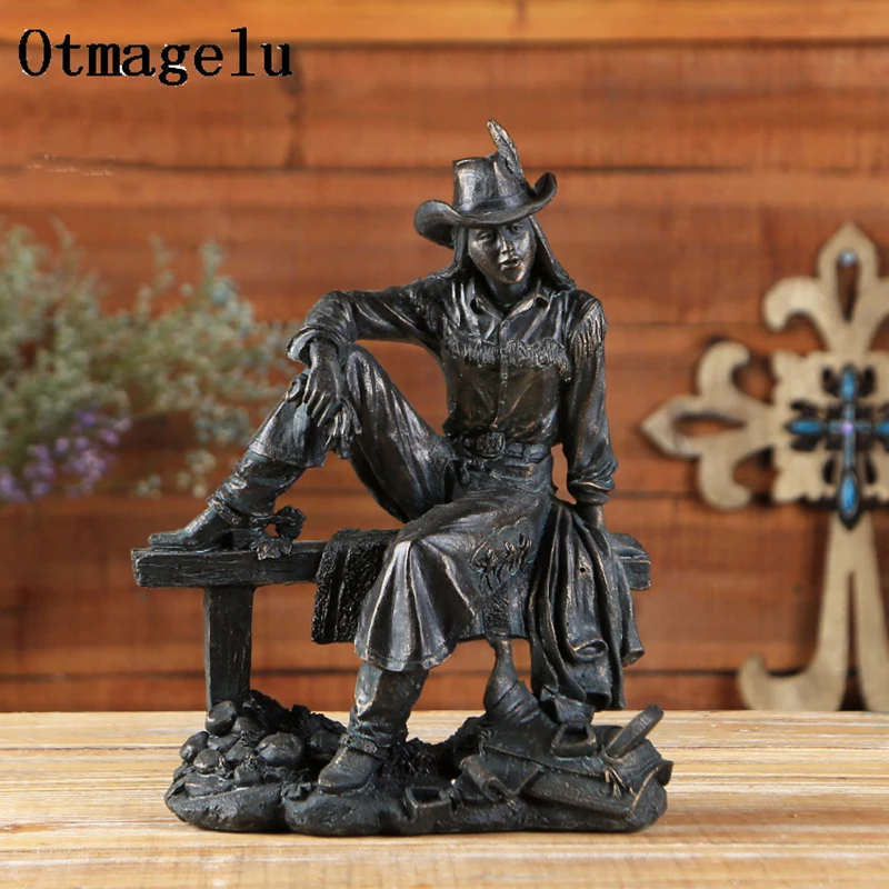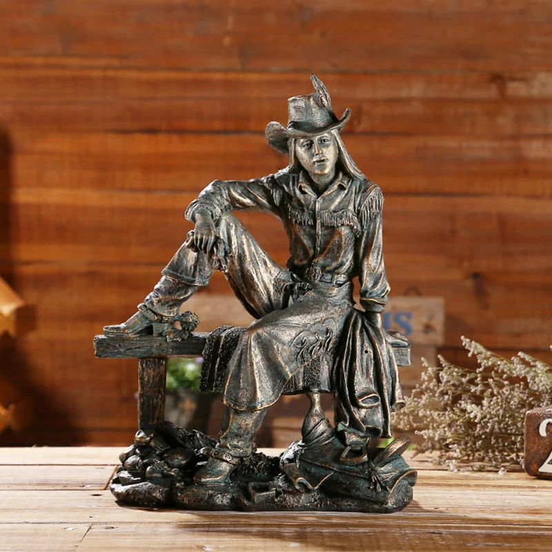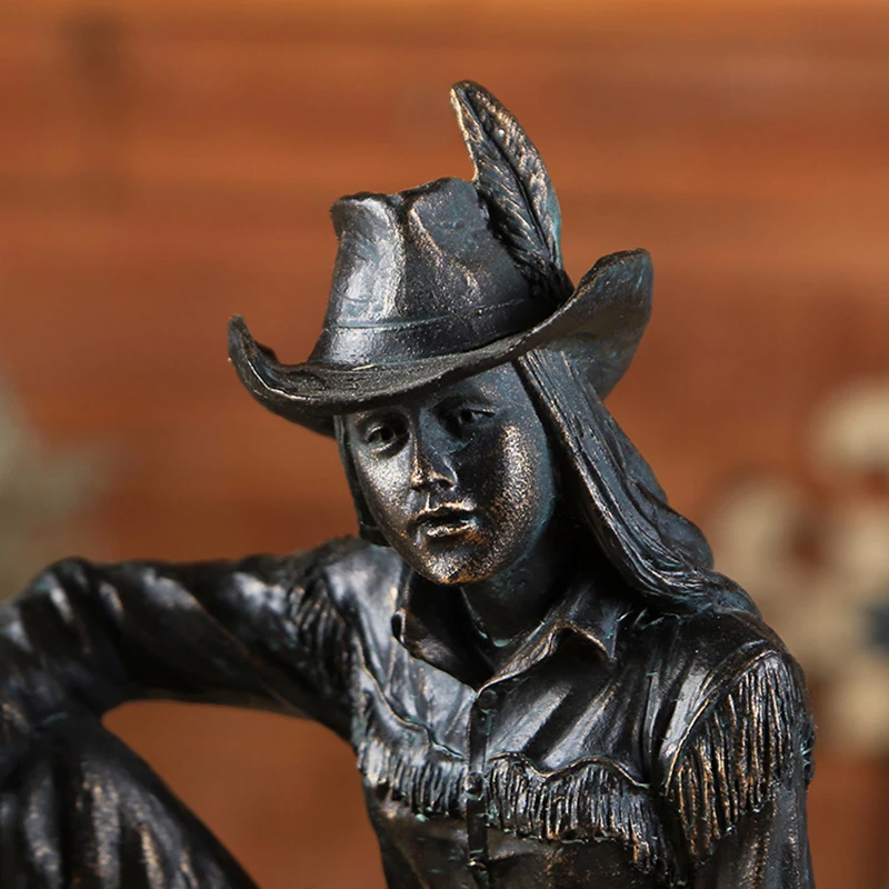 Vintage Resin American Western Cowboy Ornament Figurines Miniatures Person Statues For Home office Background Wedding Decoration