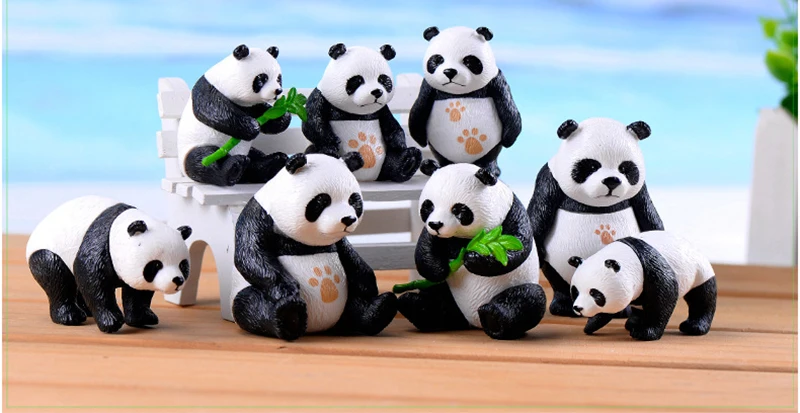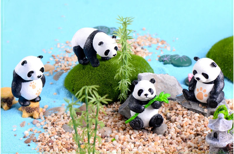 Figuritas de panda gigante artificiales, adornos de animales en miniatura, Gnomo de jardín de hadas, accesorios de decoraciones para el hogar, 4 piezas