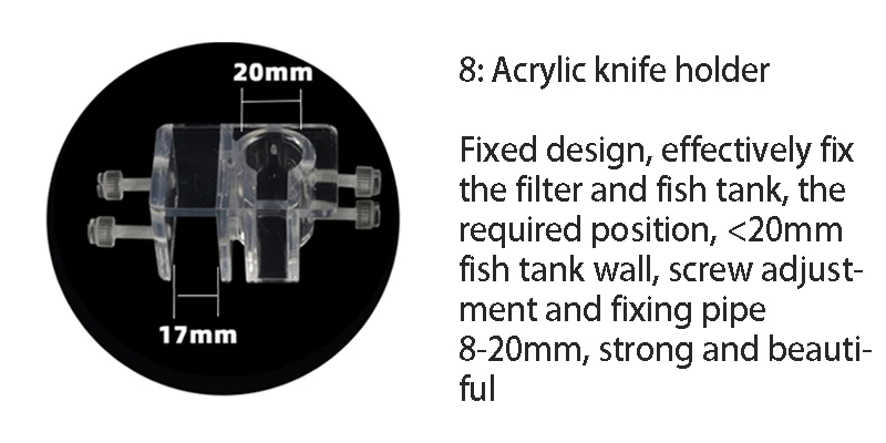 5) Utilice clips acrílicos para fijar fácilmente los tubos de entrada y salida en el costado de la pecera.