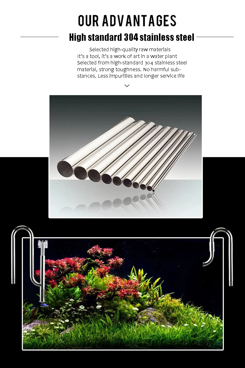 Materias primas seleccionadas de alta calidad.Es una herramienta, una obra de arte en una planta acuática.Elija entre materiales de acero inoxidable 304 de alto estándar con gran tenacidad.Sin sustancias nocivas.Menos impurezas, mayor vida útil