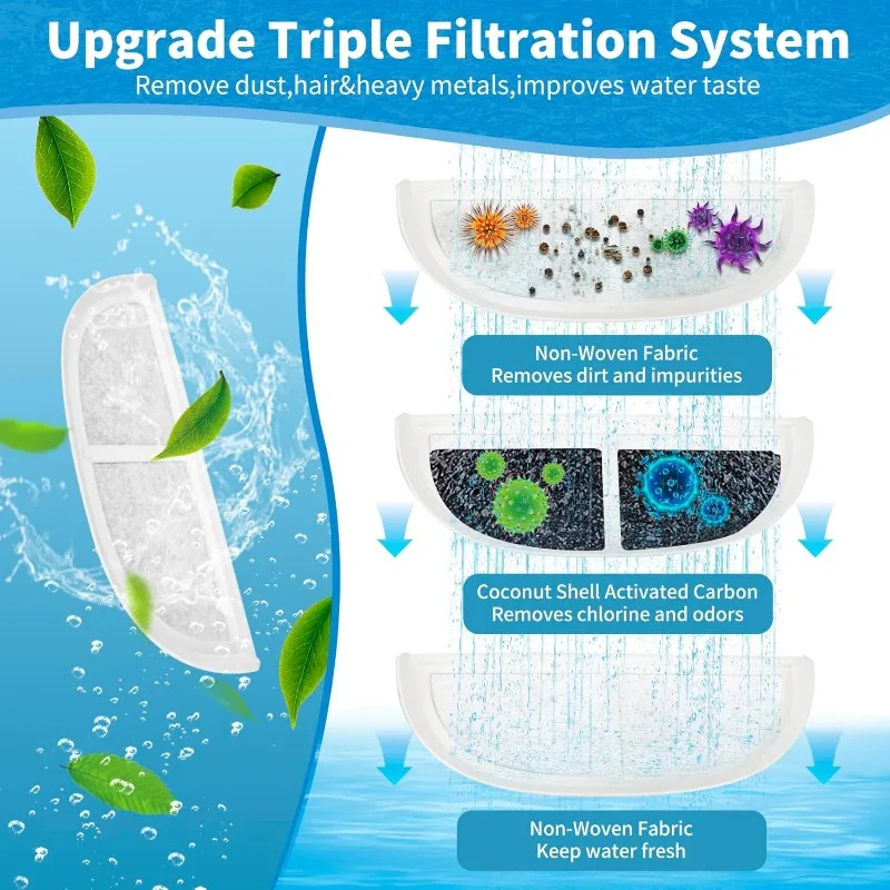*Sistema de triple filtración: garantiza una filtración completa y eficiente del agua, proporcionando agua limpia y fresca para sus mascotas.