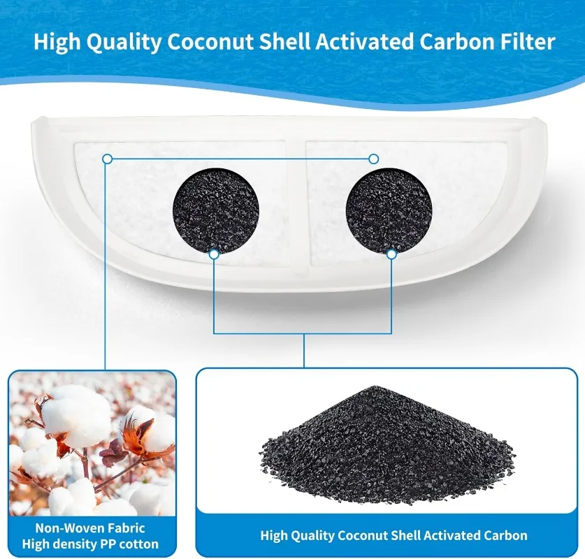 *Mejor calidad del agua: elimina eficazmente las impurezas y el olor del agua, asegurando la salud e hidratación de sus mascotas.