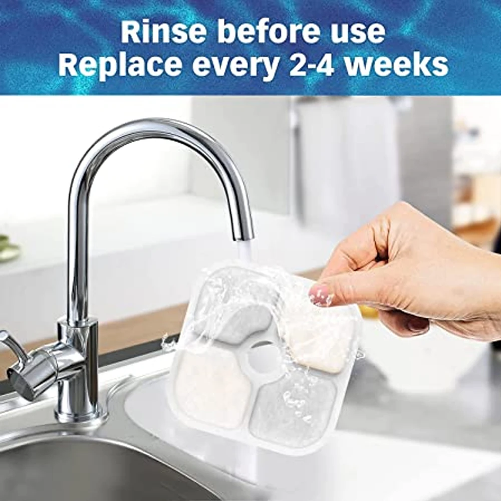 El filtro de la fuente de agua está hecho de carbón activado y material de algodón de buena calidad, duradero y reutilizable.