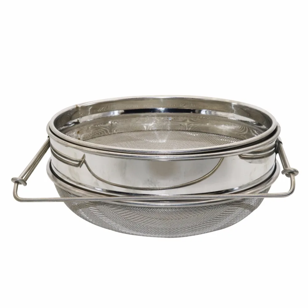 Nombre: Filtro de miel de acero inoxidableMaterial: acero inoxidableEspecificaciones: malla pequeña 80 malla 100Filtro de gran diámetroGrande: 24cmPequeño: 23,2 cmEl filtro de miel (RED) es una de las herramientas importantes que filtras la miel. Fabricación profesional, mano de obra exquisita, muy fácil de usar, puede ser un filtrado muy completo de las impurezas de la miel en el interior. Es un buen ayudante para su apicultura y trabajo al aire libre.