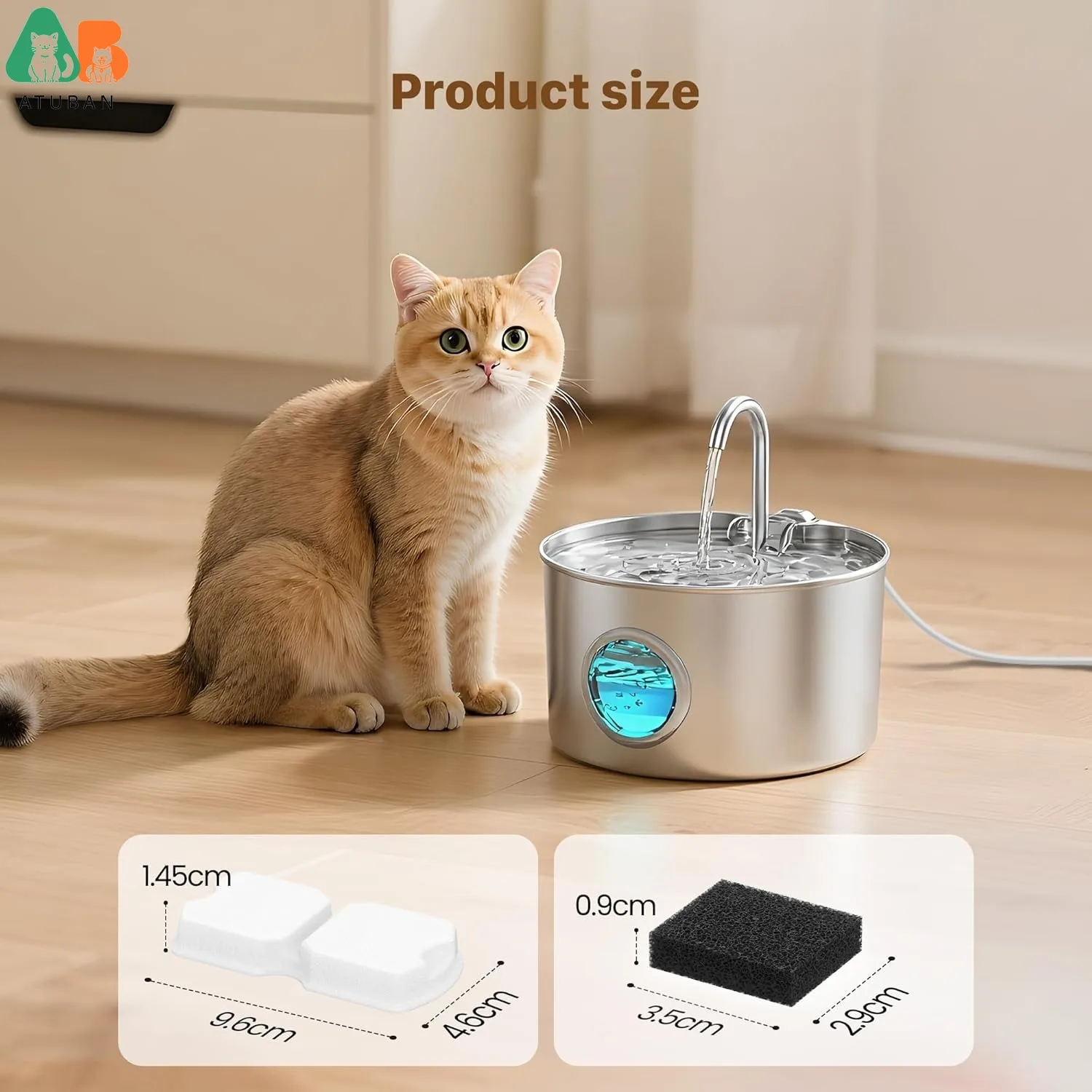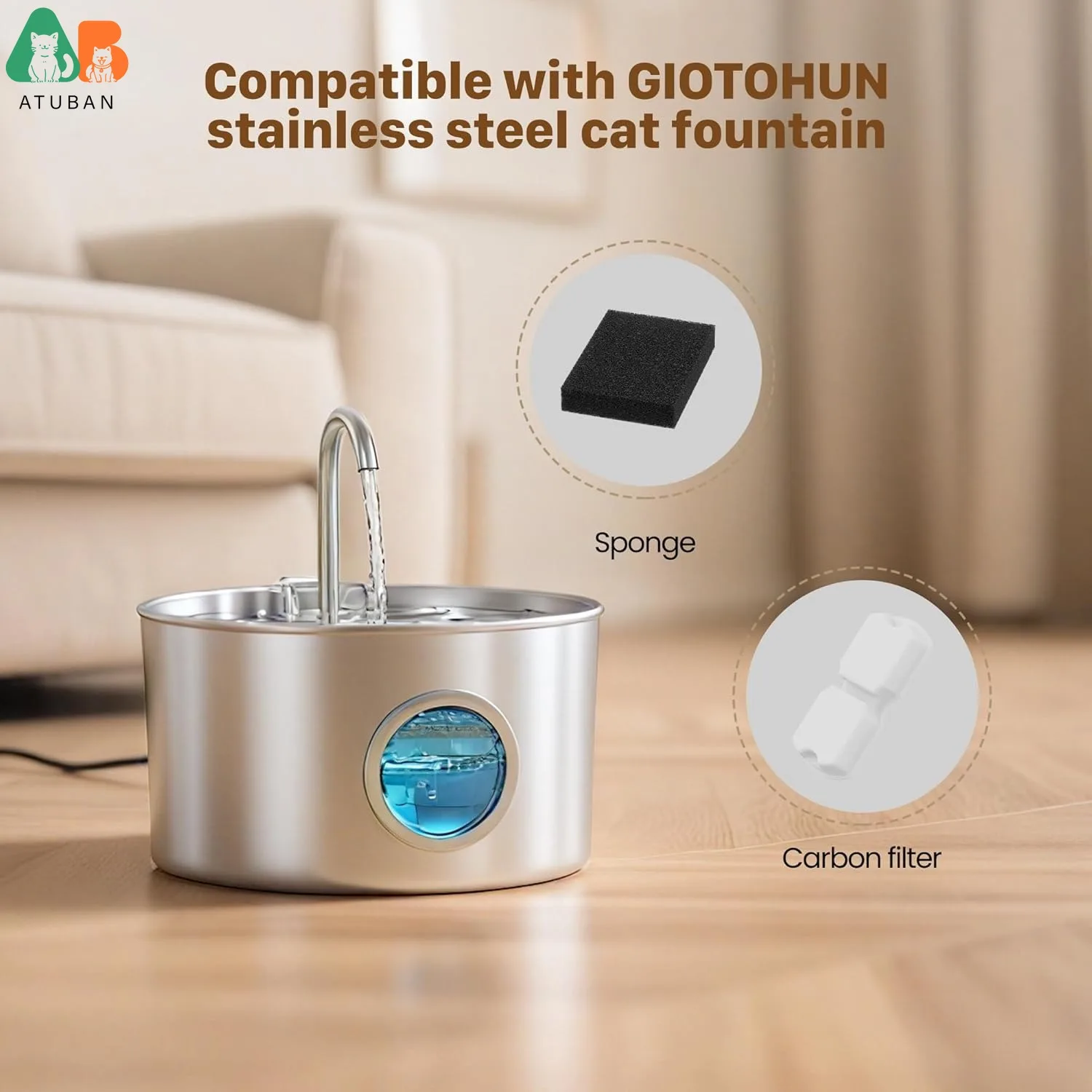 【Combinación correcta】Este filtro se combina con el dispensador de agua para gatos de acero inoxidable GIOTOHUN de 2,2 L.