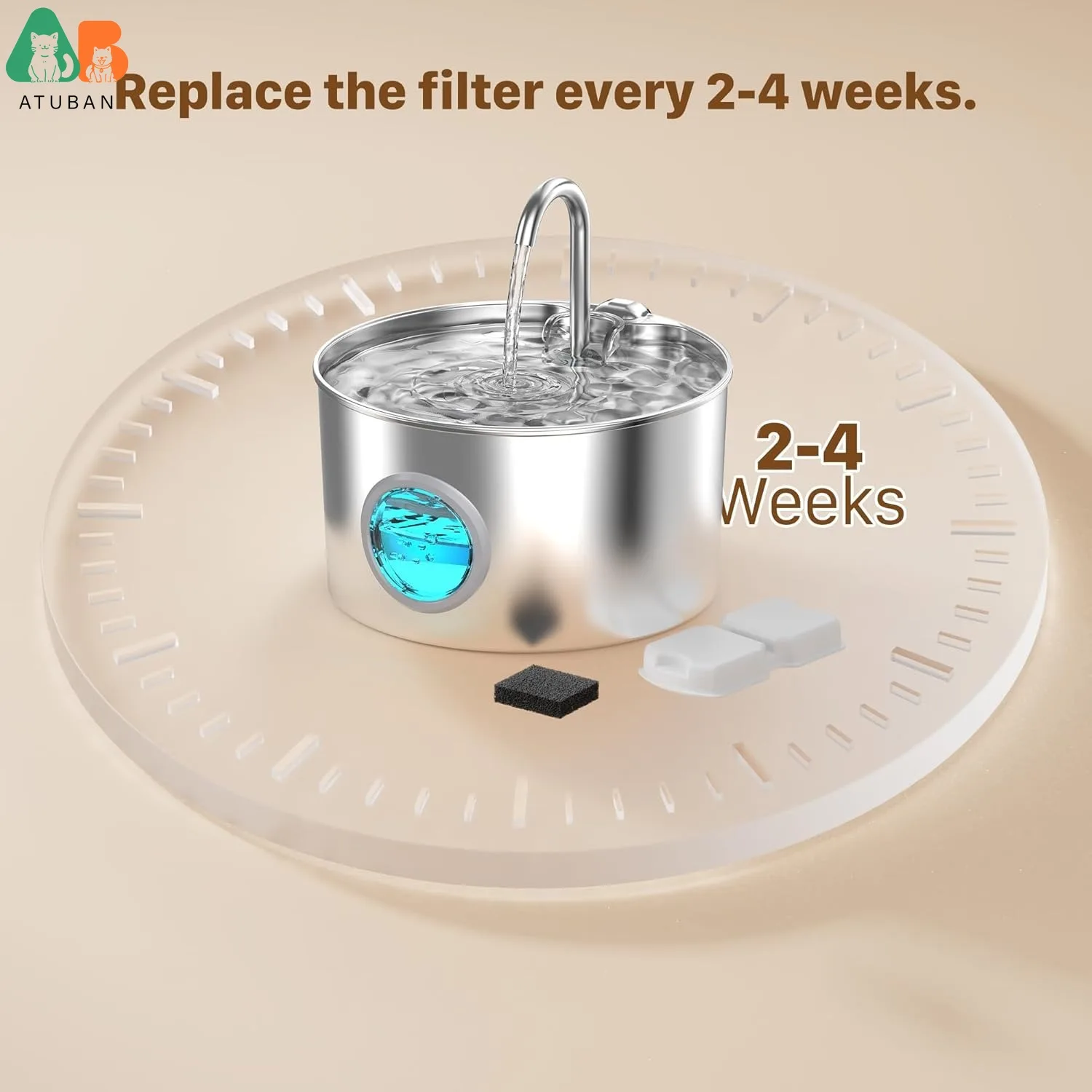 【Sugerencias de uso】Antes de usar, remoje el filtro en agua durante 5 minutos para eliminar el polvo. Cambiar el filtro cada 2-4 semanas es bueno para mantener el agua limpia y mejorar la experiencia de beber de la mascota.