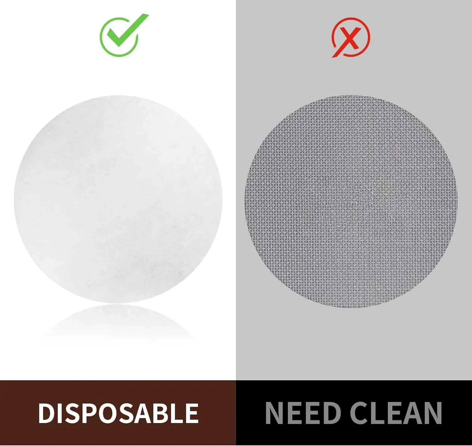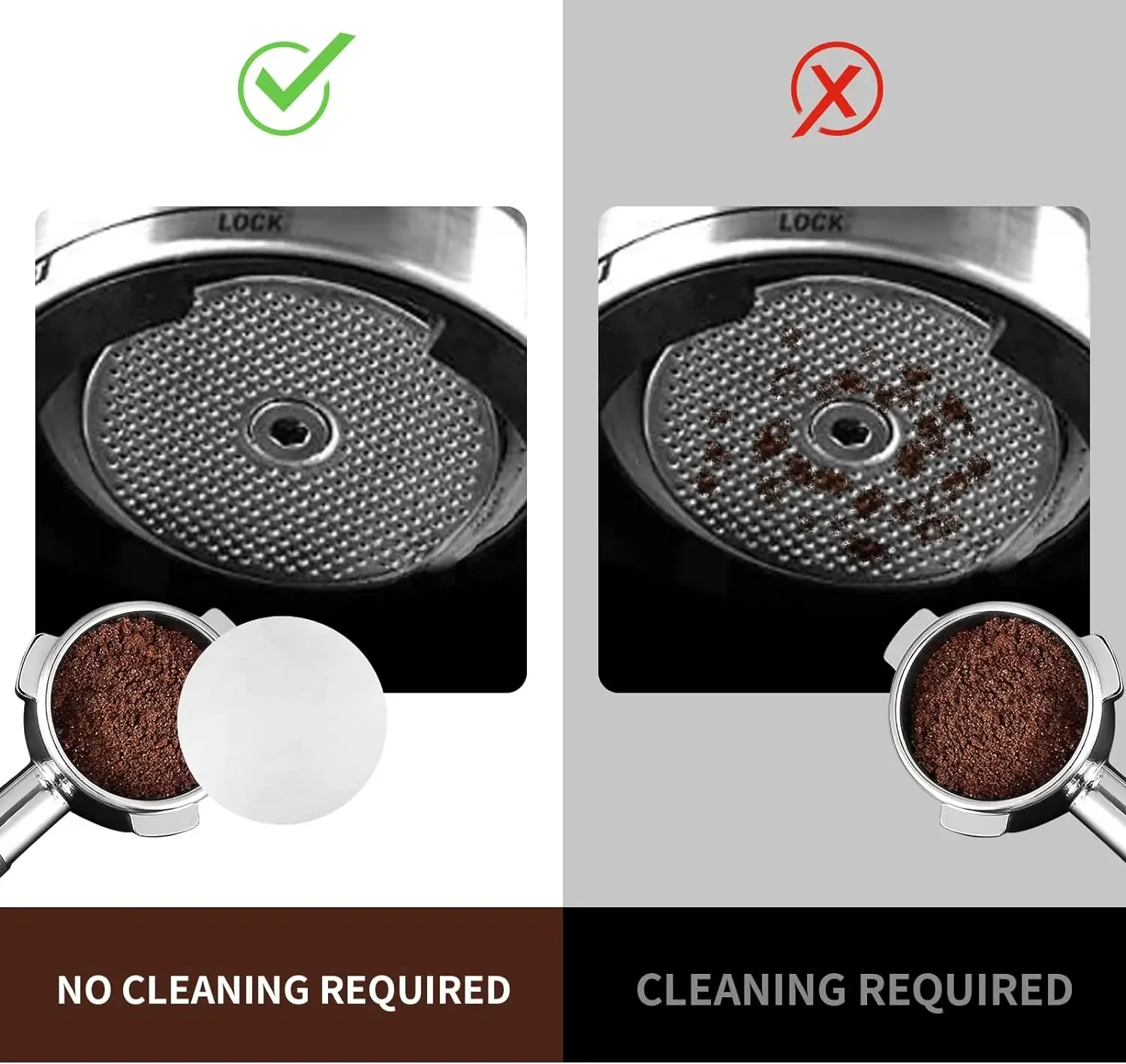 En comparación con la rejilla de los discos de hielo de acero inoxidable, estos filtros de papel para espresso ya no necesitan quitar el filtro de metal del disco de hielo de los posos de café para su limpieza. El filtro de papel es más suave que la pantalla de disco de acero inoxidable, protege mejor la máquina de café y prolonga la vida útil de la máquina.