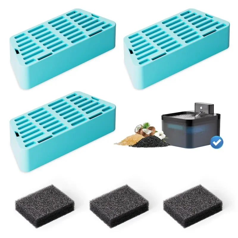 Filtro de repuesto para fuente de agua para gatos con pilas, 3 filtros y 3 esponjas prefiltro, filtros de repuesto